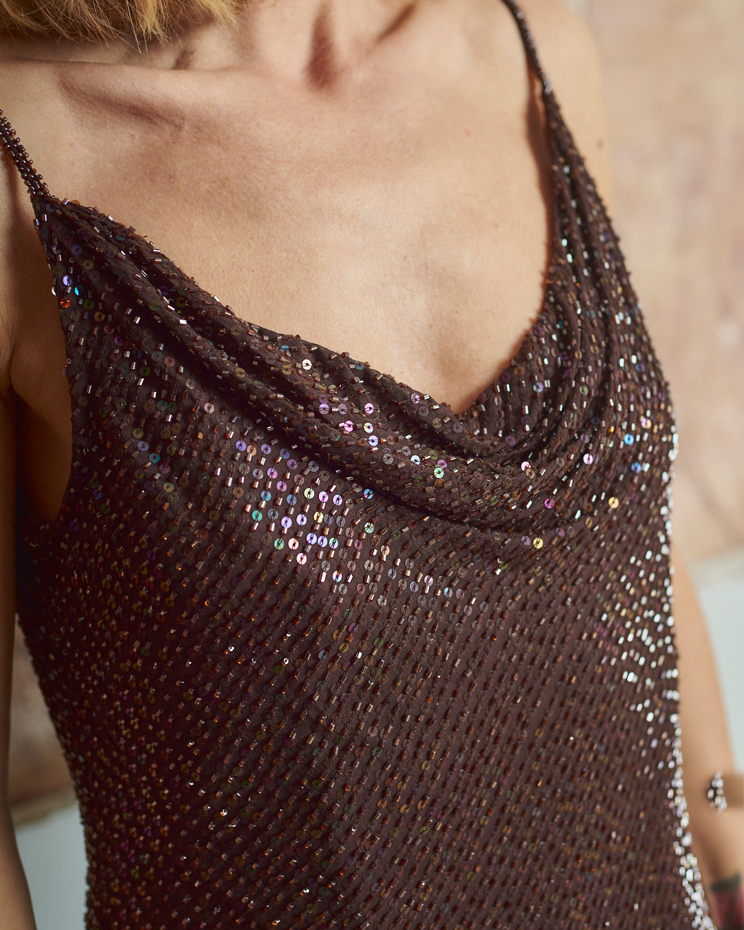 top con perline e paillettes