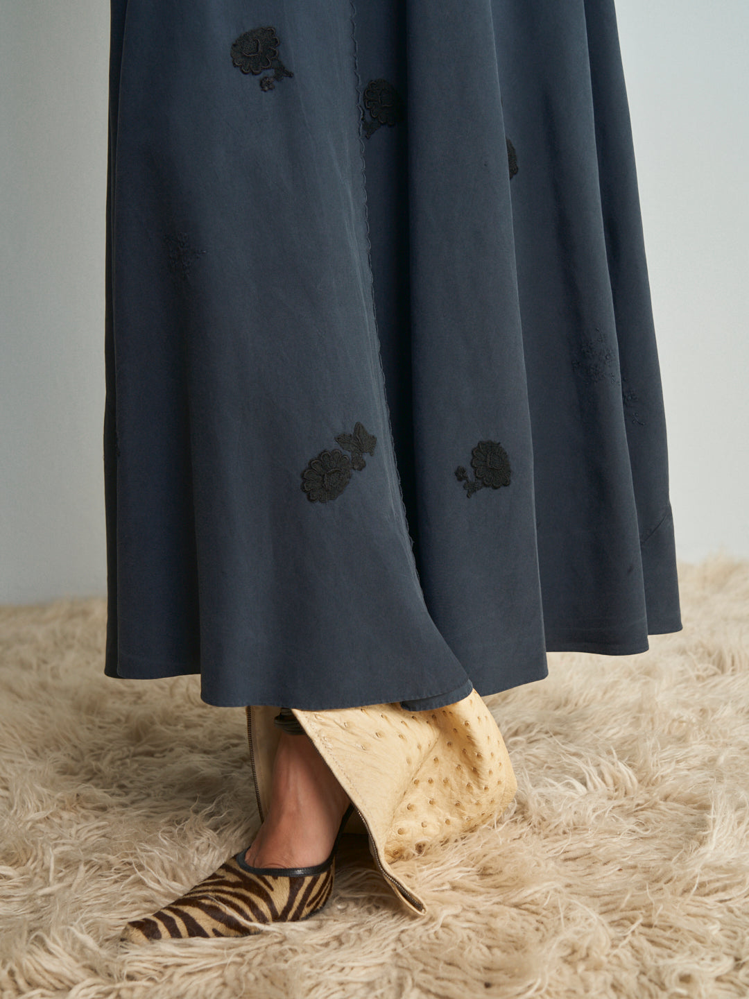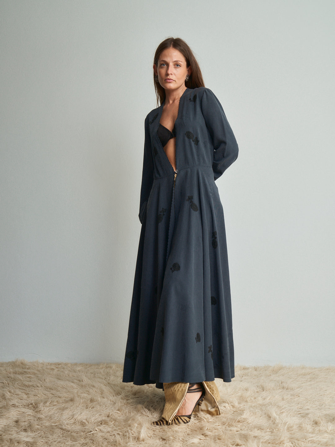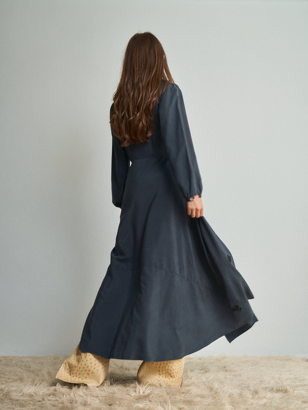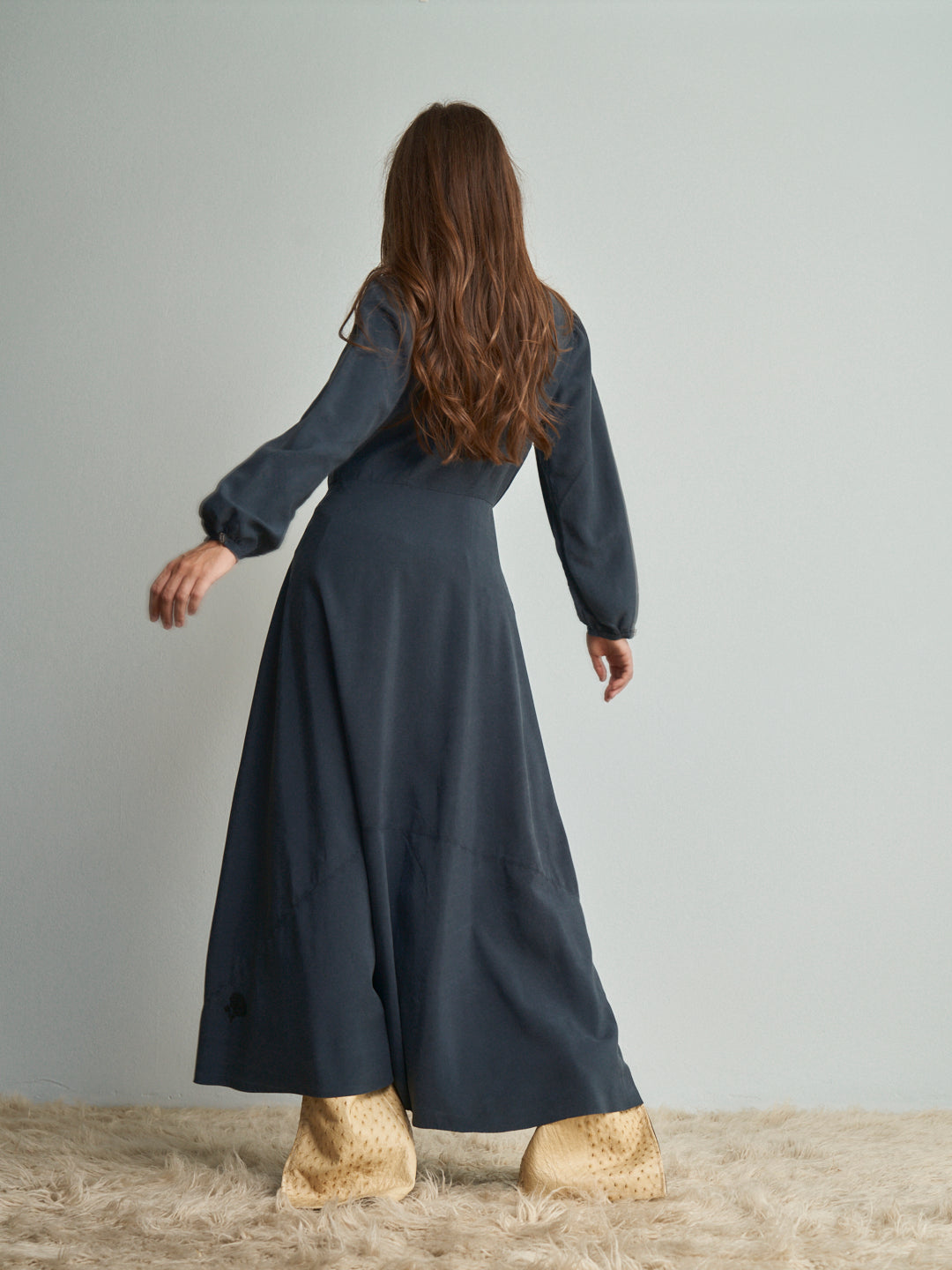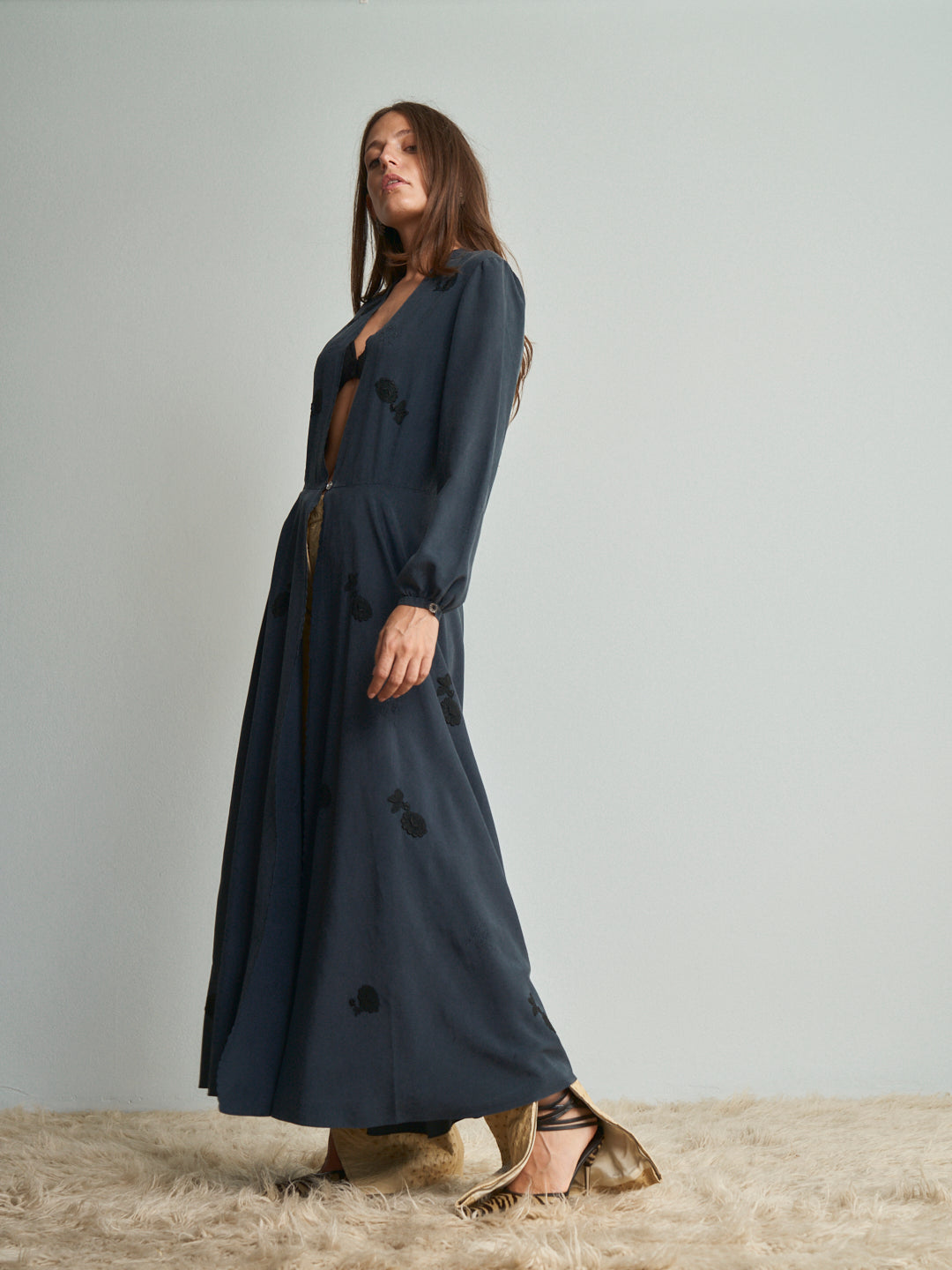 Vestaglia anni 30 tinta in capo in pura seta con pizzo e scavo profondo