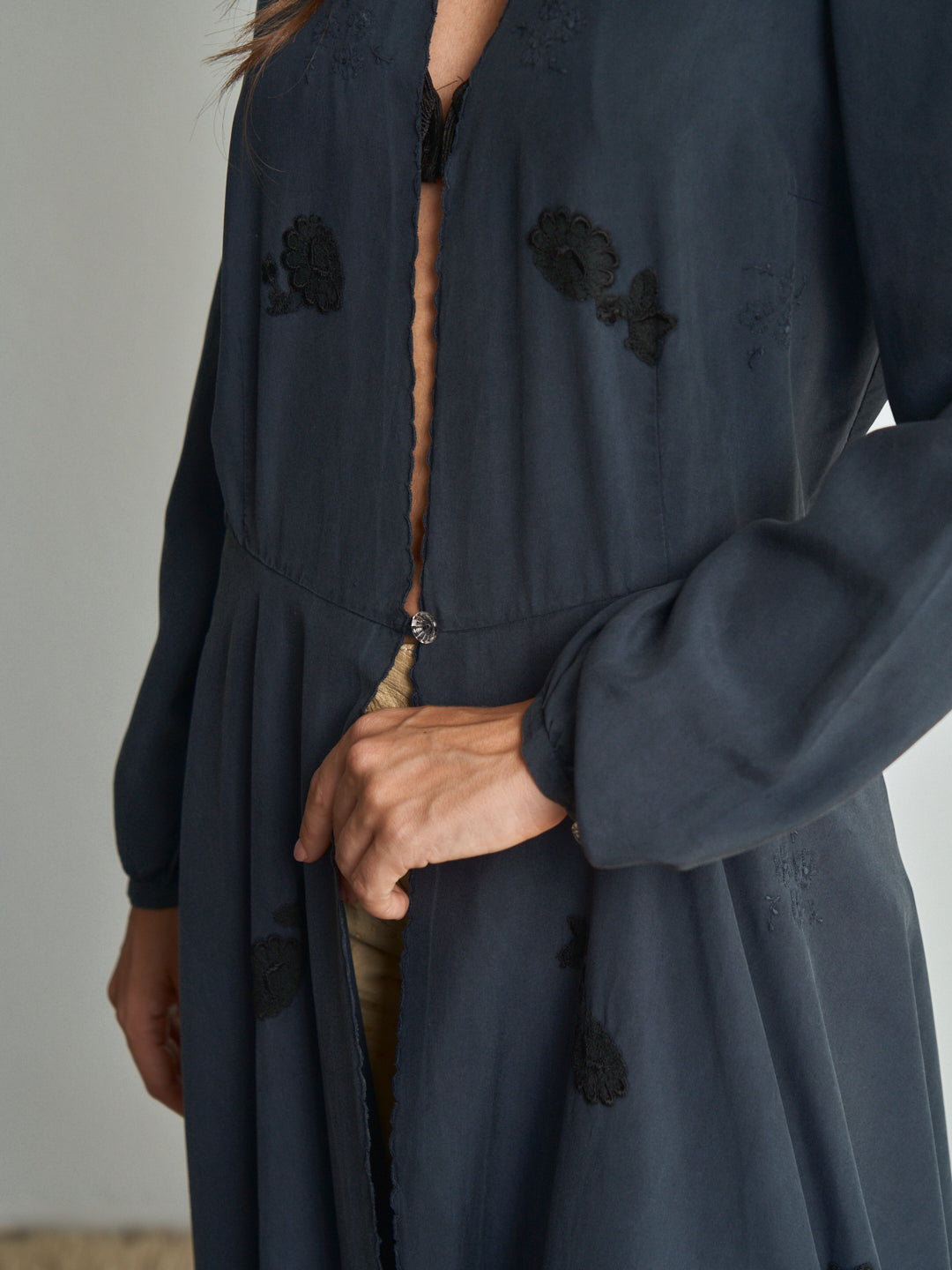 Vestaglia anni 30 tinta in capo in pura seta con pizzo e scavo profondo chiusura con bottone davanti