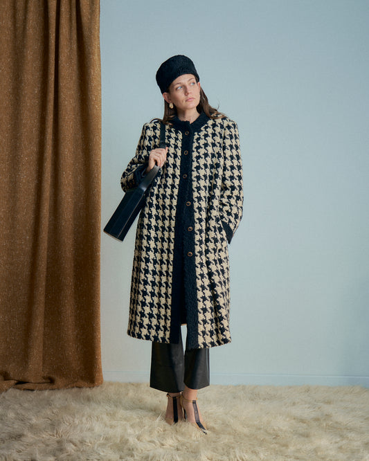 Cappotto in lana pied-de-poule imbottito all'interno