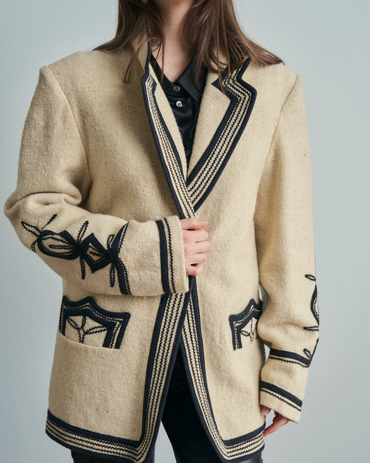 Giubbotto sartoriale ricamato a mano in lana d'alpaca
