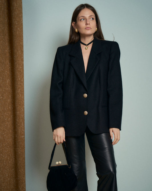 Giacca in lana twill nera con bottoni dorati