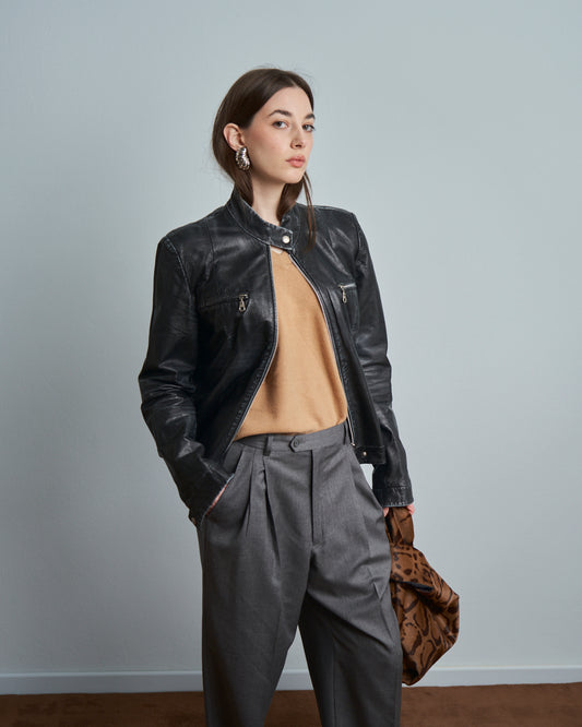 Giacca in pelle delavé modello biker