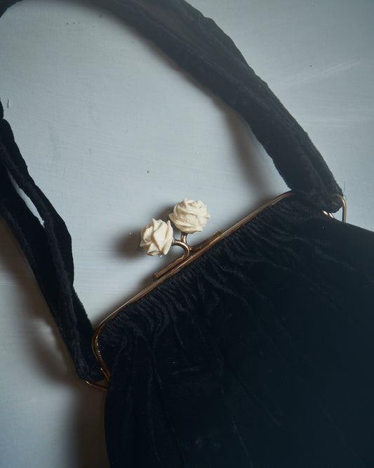 Borsa anni 40 in raso di seta oro con pochette e porta cipria con cipria