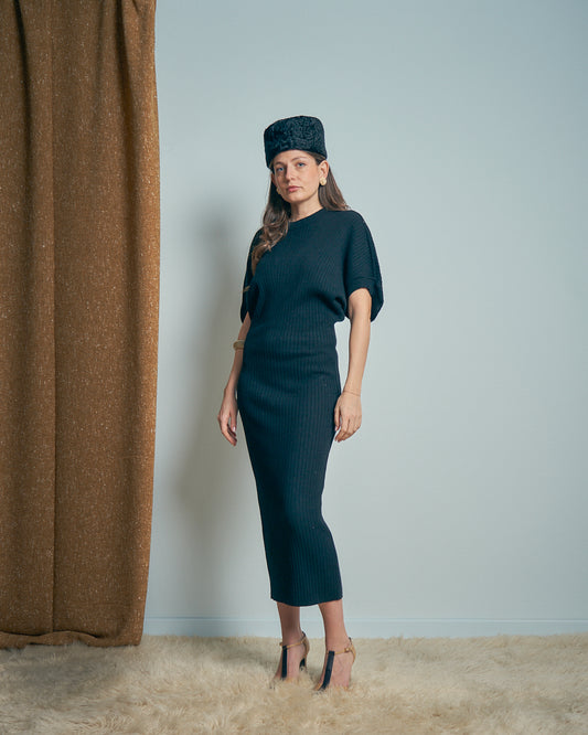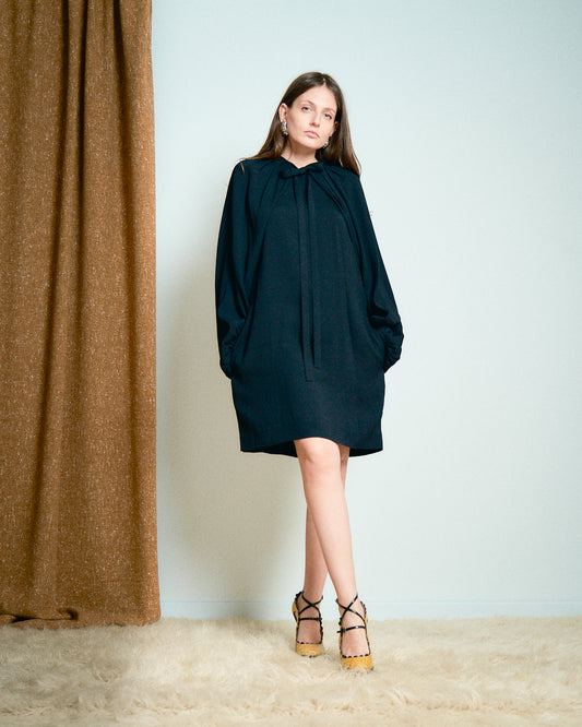 Abito Miu Miu a tubino smanicato con mantella a palloncino incorporata