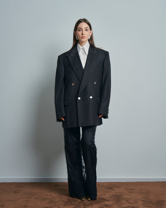 Blazer doppiopetto Yves Saint Laurent Hommes in lana grigio bottoni madreperla