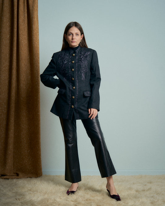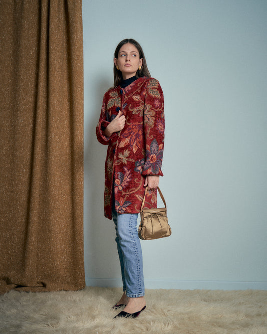 Cappotto sartoriale in tessuto tapestry effetto ciniglia bottoni passamanerie