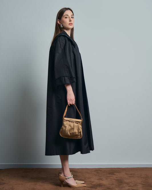 Cappotto anni 50 in seta con collo ampio e passamanerie
