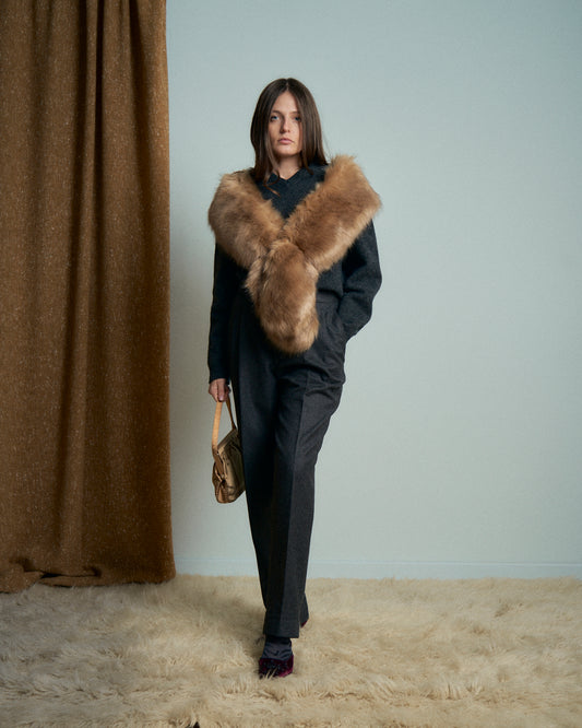 Abito Narciso Rodriguez In lana gessata e velluto con zip apribile