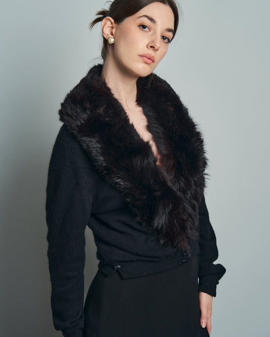Cardigan in cachemere anni 50 made in Usa con collo in pelliccia