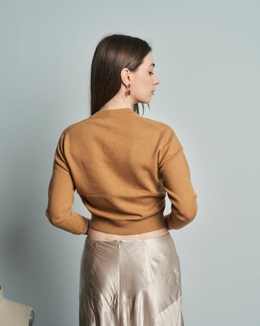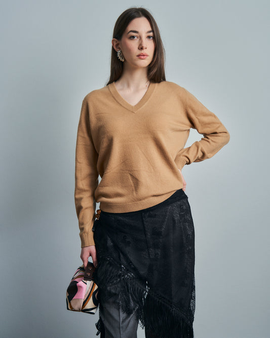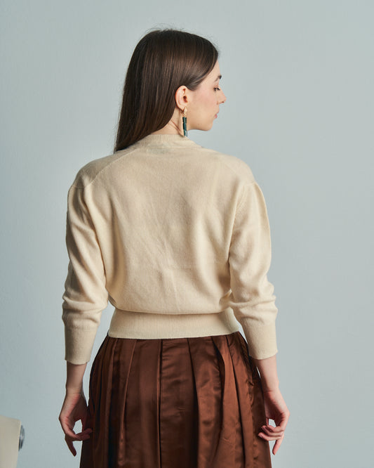 Maglia anni 50 in cashmere beige girocollo made in Scotland