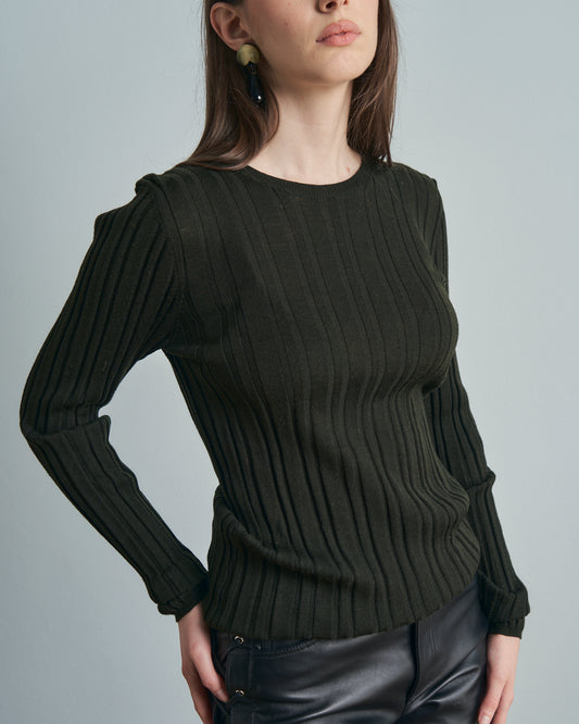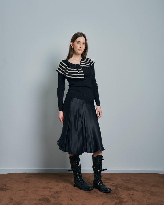 T-shirt in lana a coste con con collo rouches a righe Jean Paul Gaultier MAILLE
