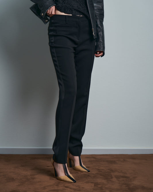 Pantaloni firmati MIU MIU slim smoking con banda di raso laterale