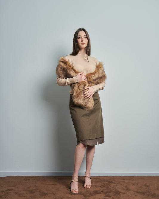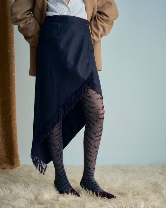 Gonna Erreuno in lana spinata con frange asimmetrica