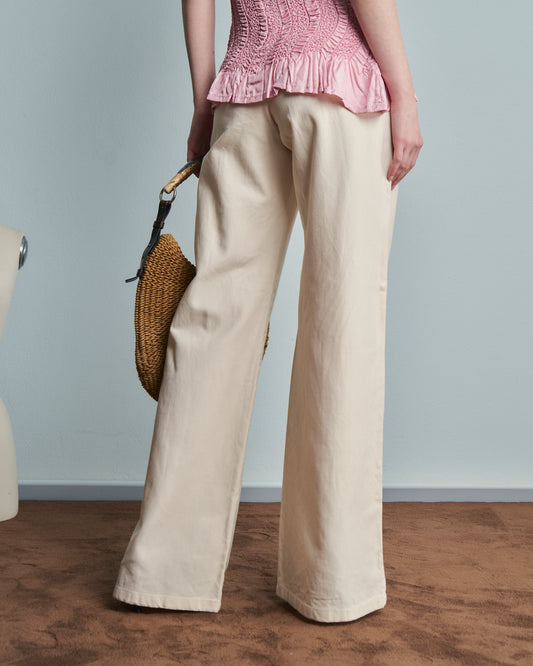 Pantaloni in cotone e seta Ann Demeulemeester con cintura asimmetrica davanti vita bassa