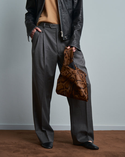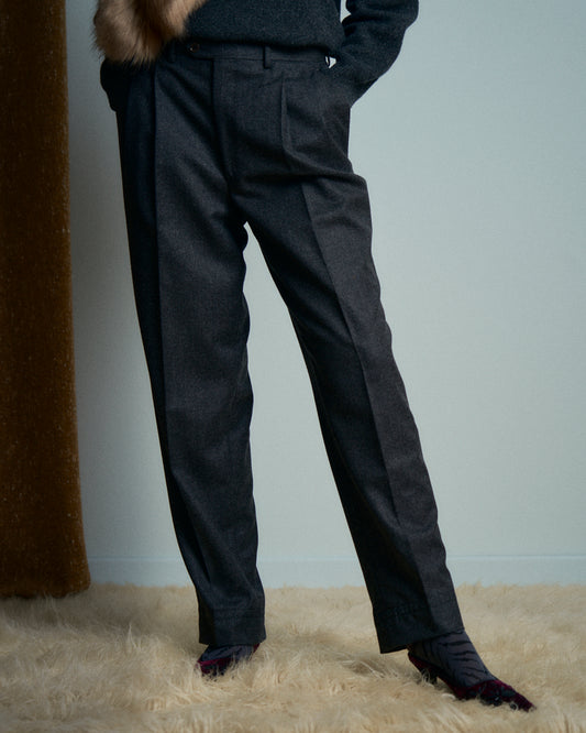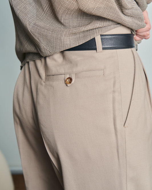 Pantaloni maschili modificati in vita, pieghe ampie in lana pettinata