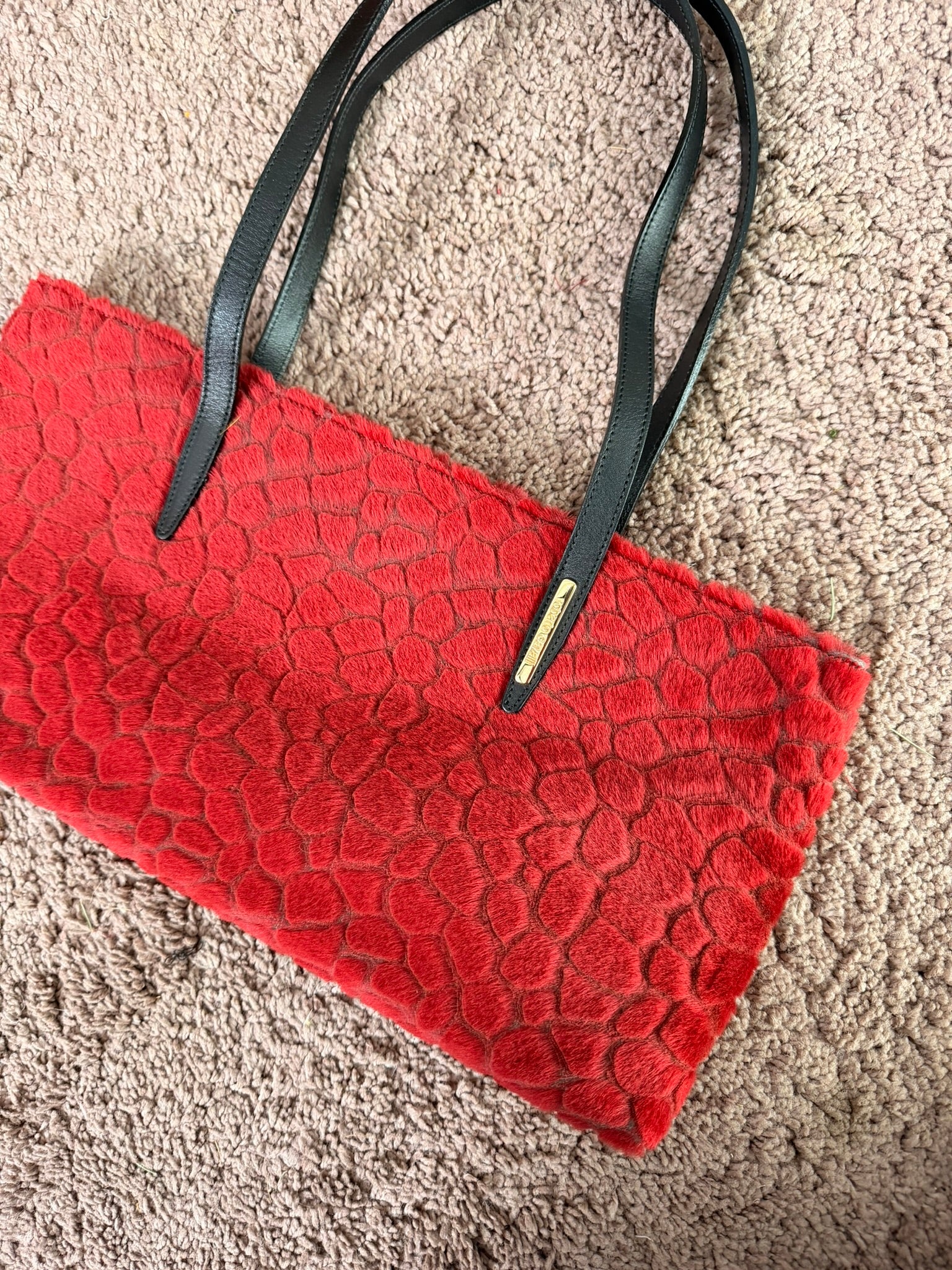 Borsa in pelle effetto cavallino laserato che forma disegni maculati tropicali a pelle di coccodrillo.