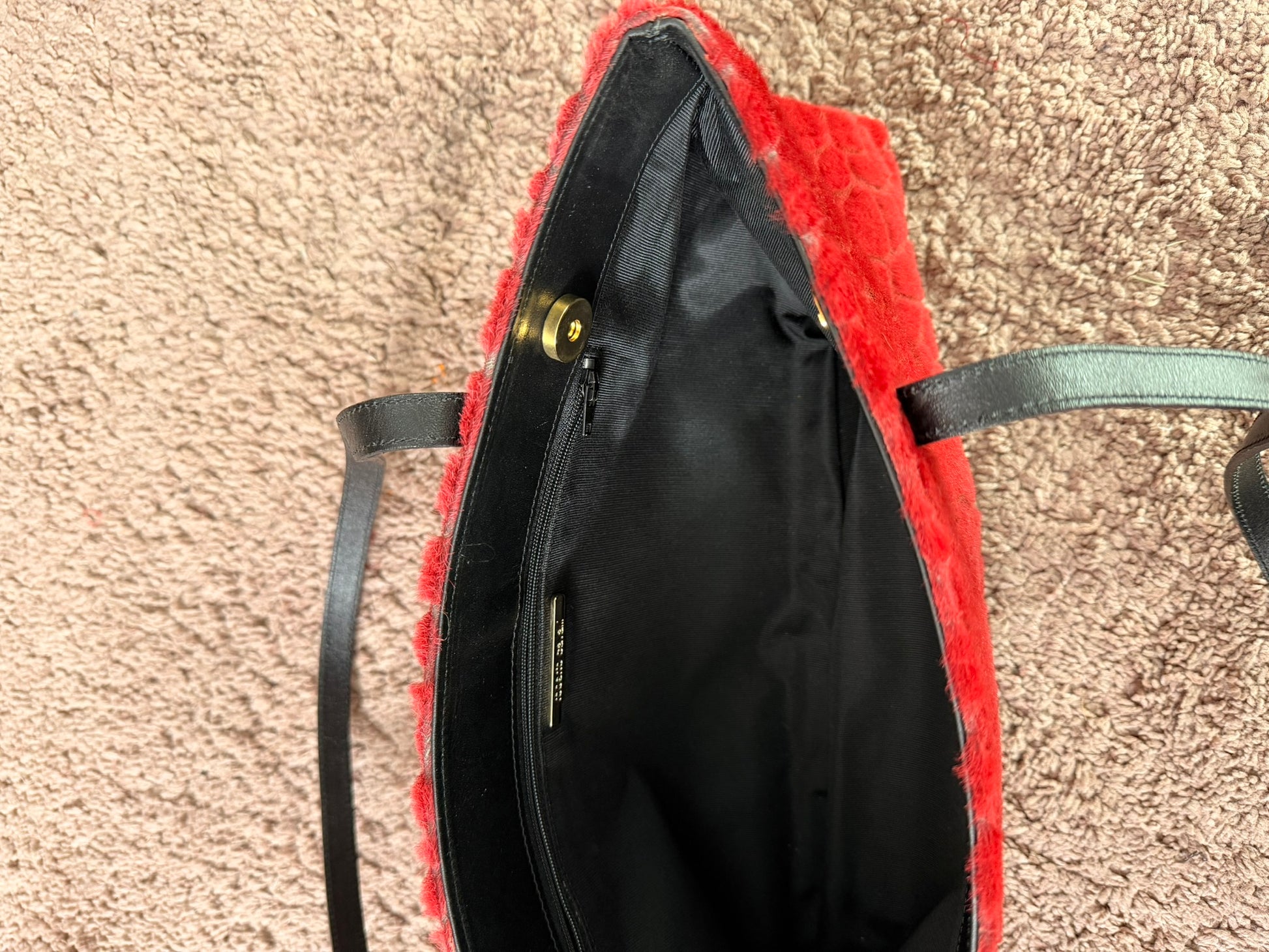 Rosso con manici in pelle neri.