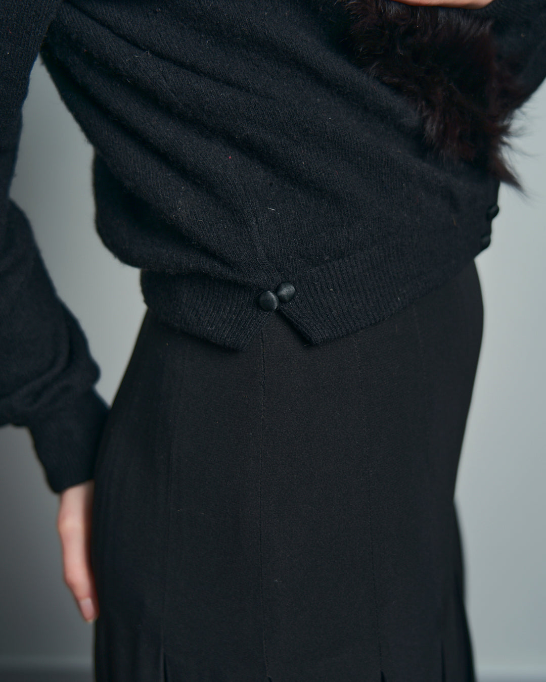 Cardigan americano in cashmere con collo in pelliccia removibile con bottoni automatici.