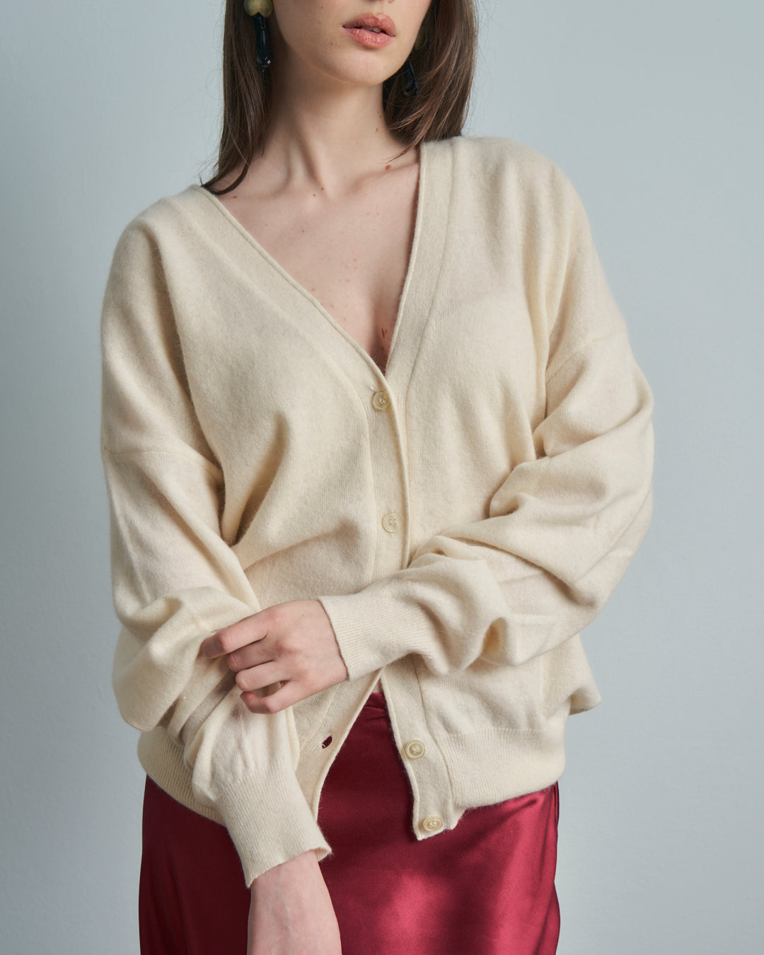 Cardigan panna Stefanel vintage anni 90 in cashmere e bottoni madreperla.