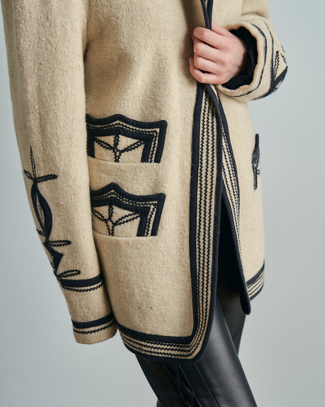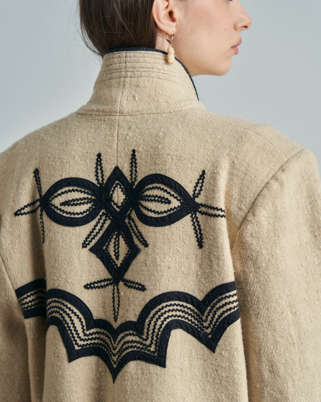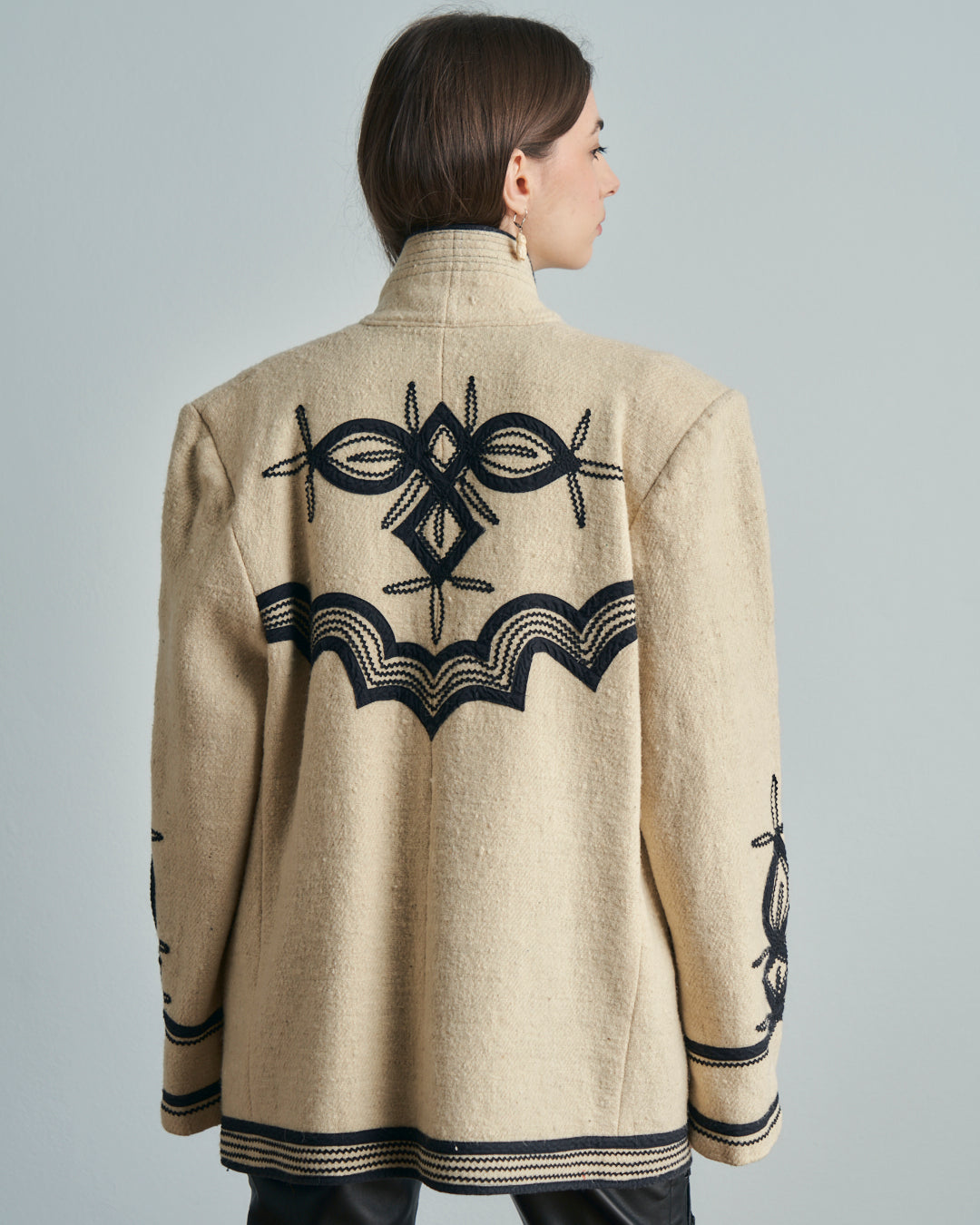 Giacca anni 70 americana Guatemala in lana con ricami neri tradizionali