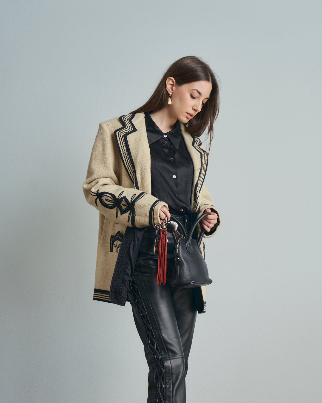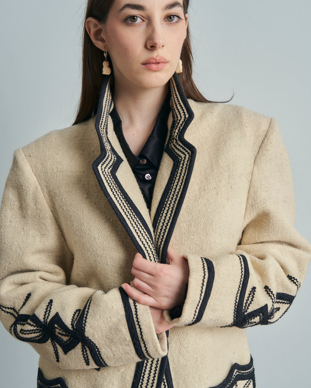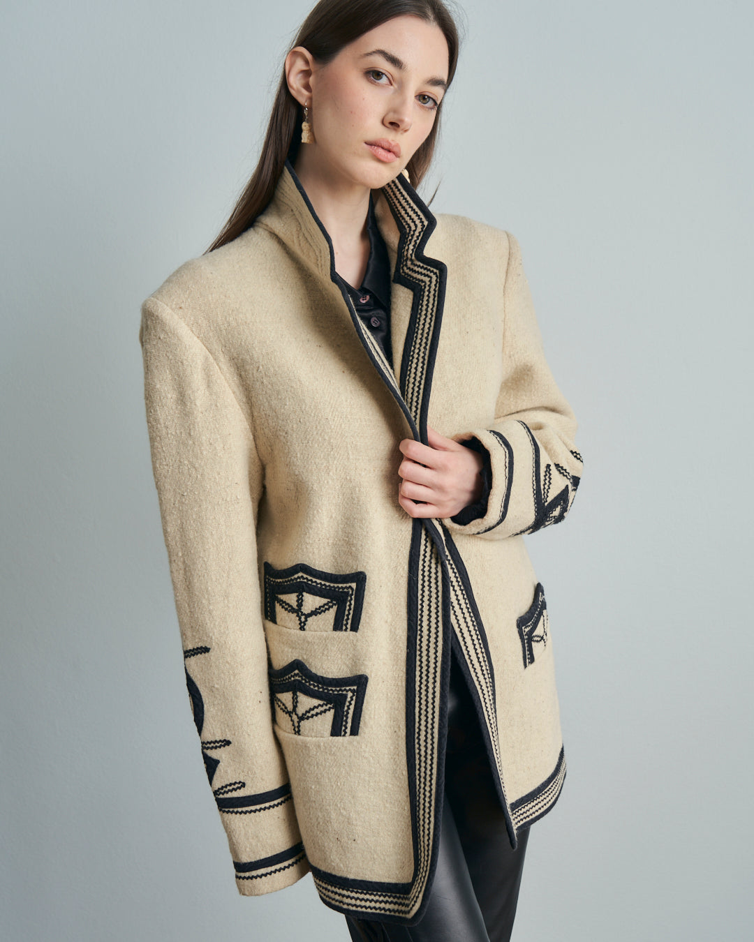 Giacca anni 70 americana Guatemala in lana con ricami neri tradizionali
