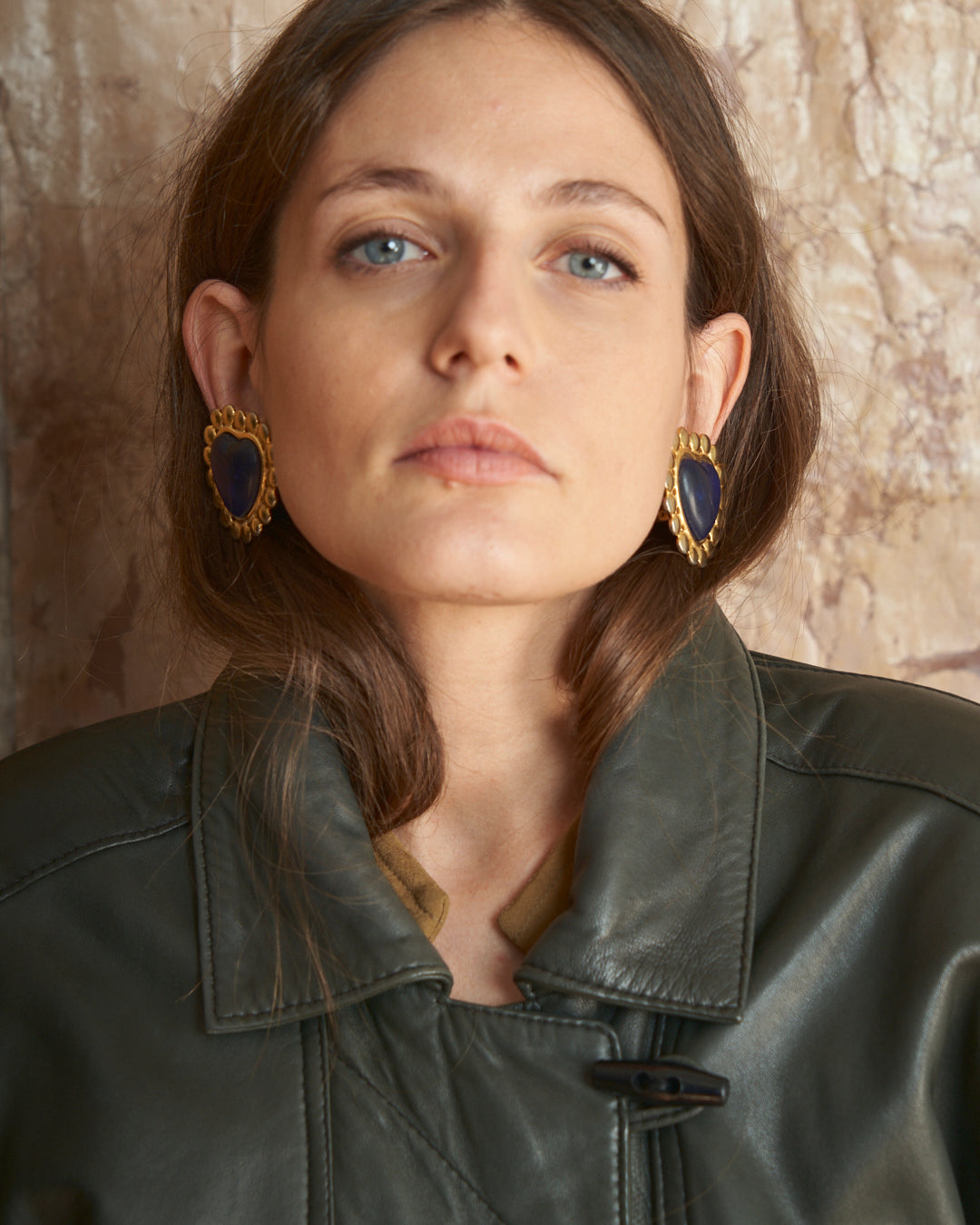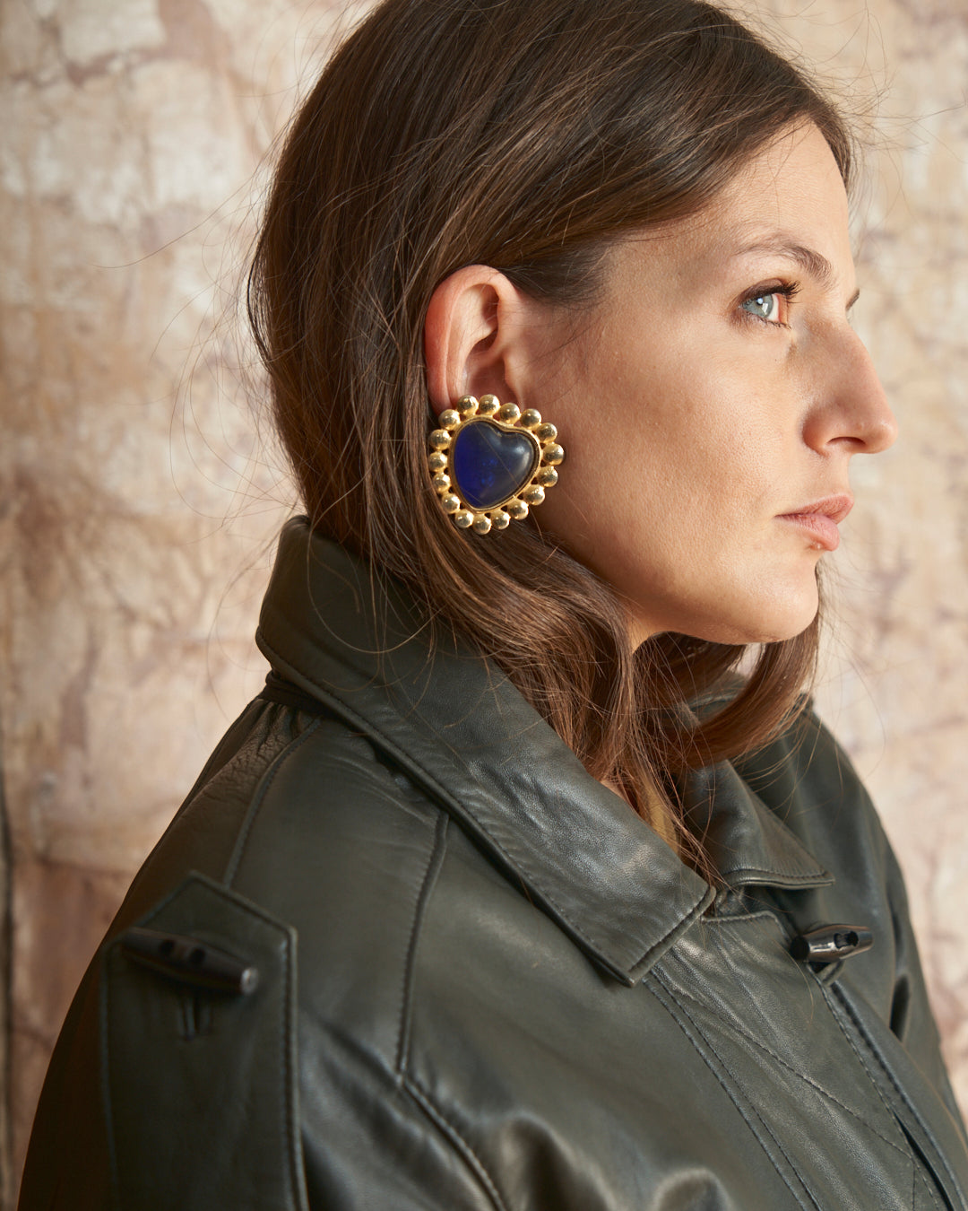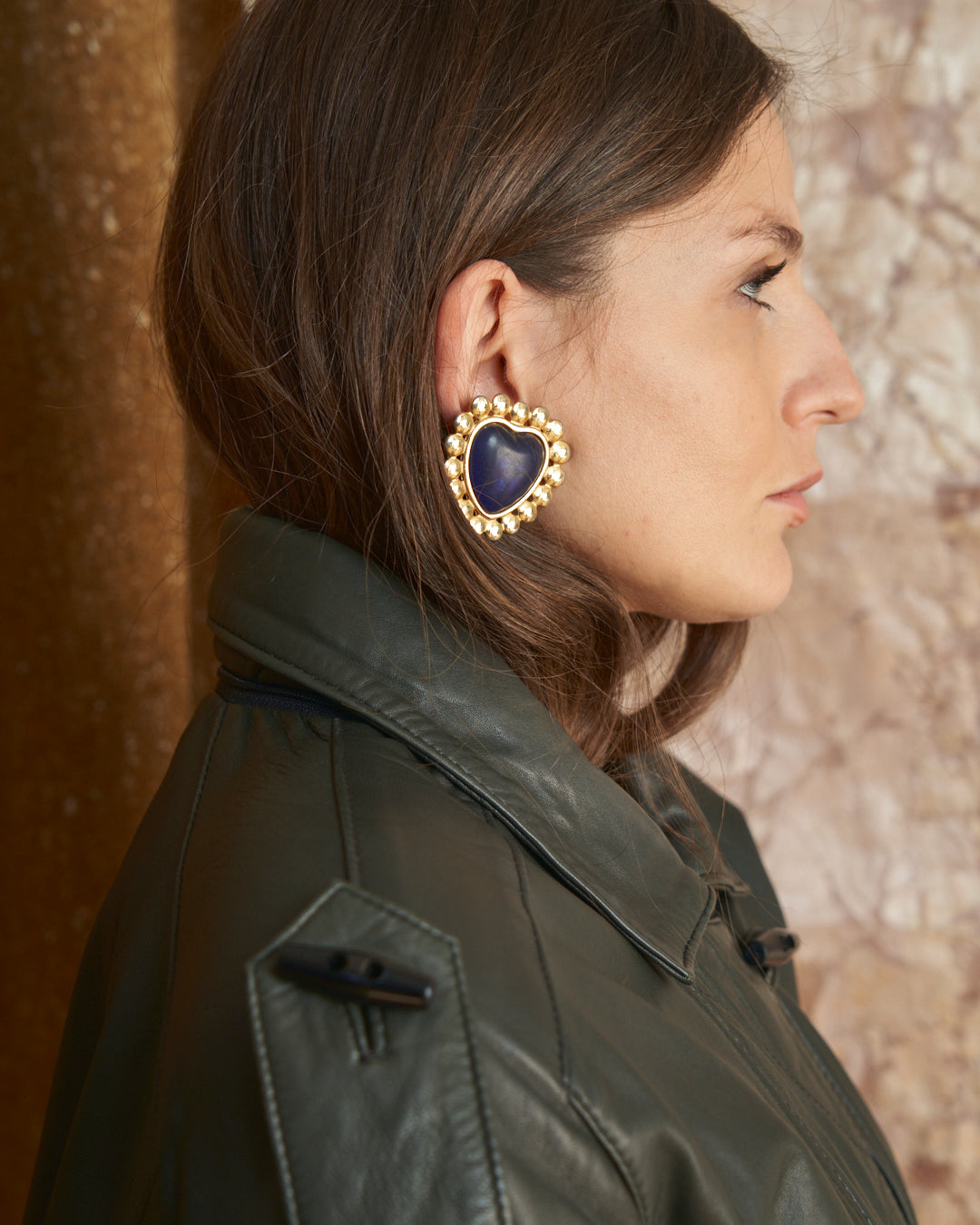 Orecchini a clip anni 80 con cuore blu navy e galvanica oro