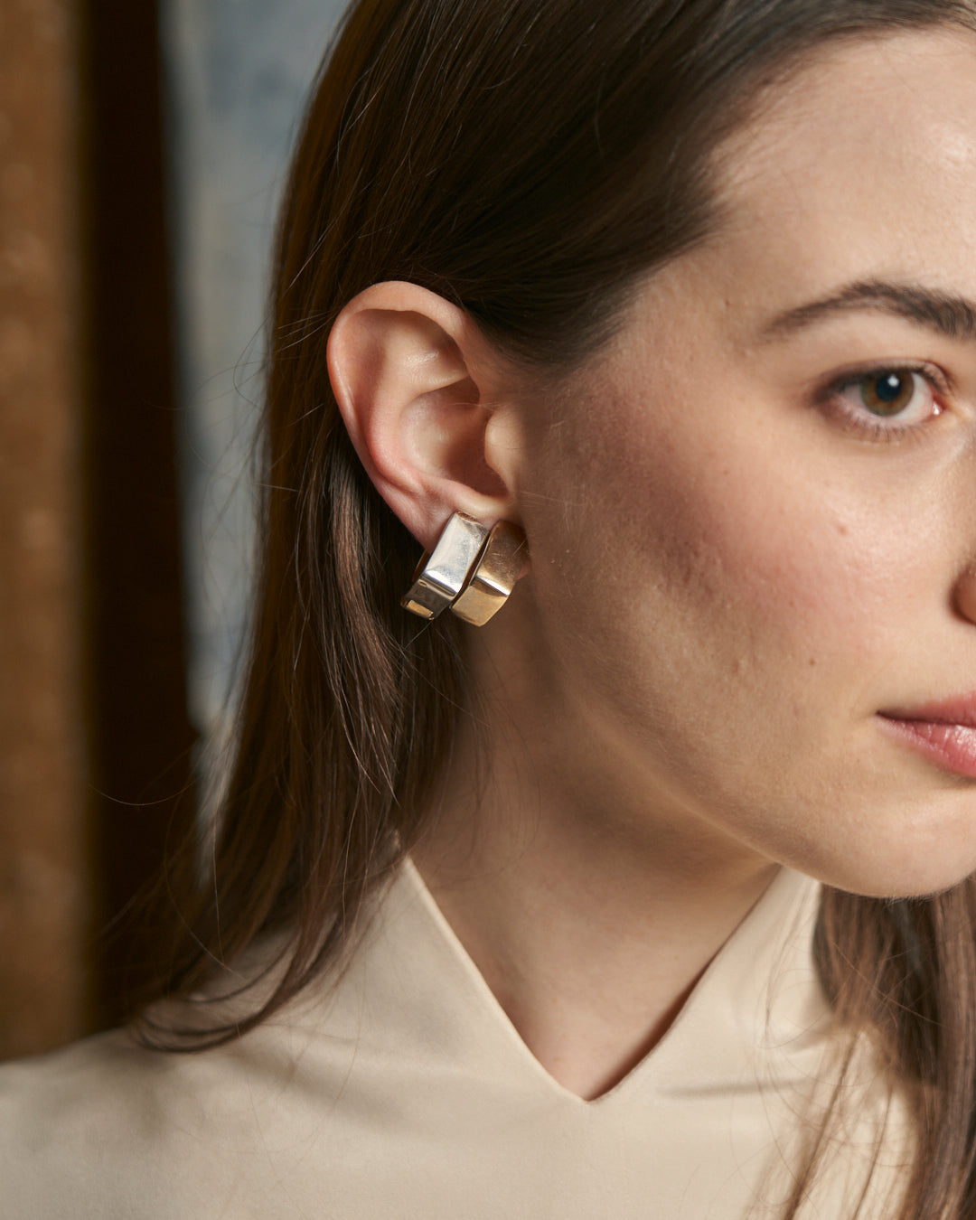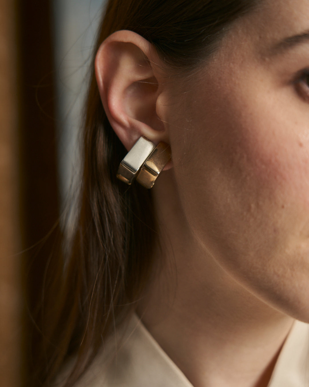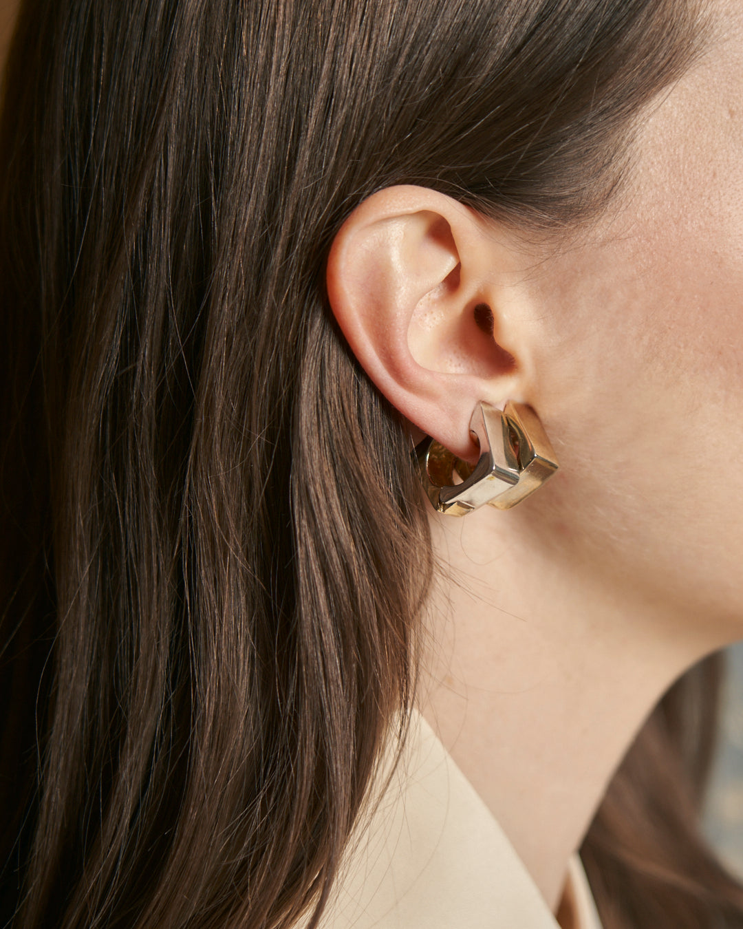 Nella foto, la coppia di orecchini è stata indossata in un solo orecchio per mostrare le due galvaniche.