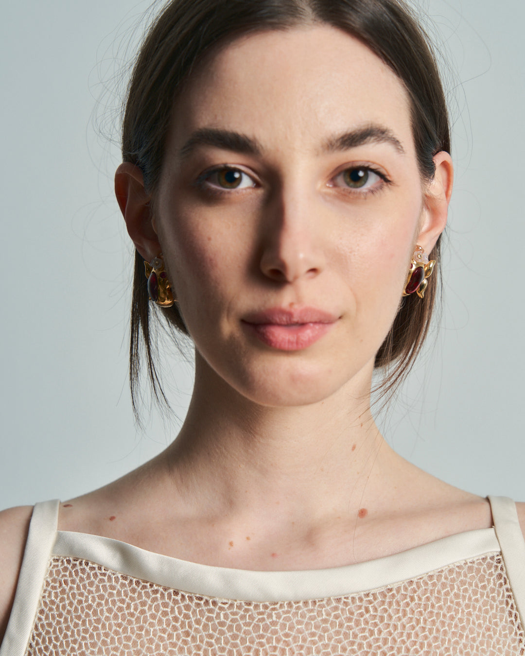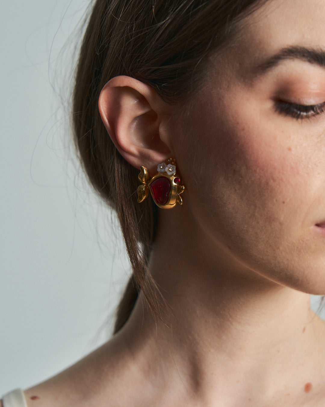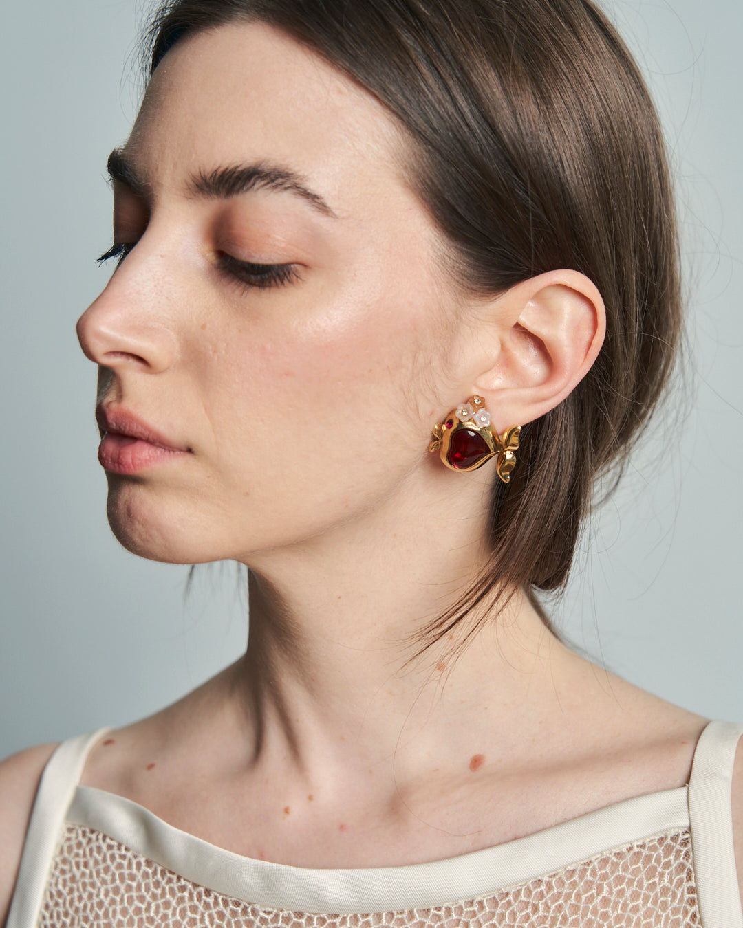 Orecchini a clip a forma di pesce o cuore con fiori applicati