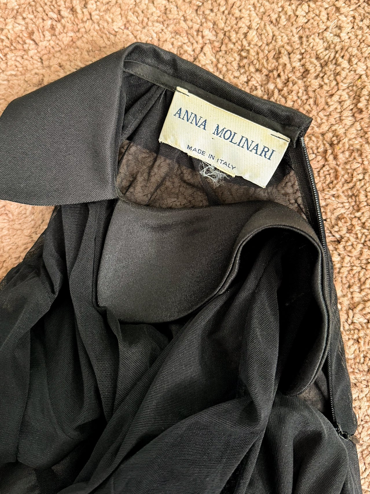 Iconico Abito in tulle elastico e satin Anna Molinari con coppe a cuore e collo baby