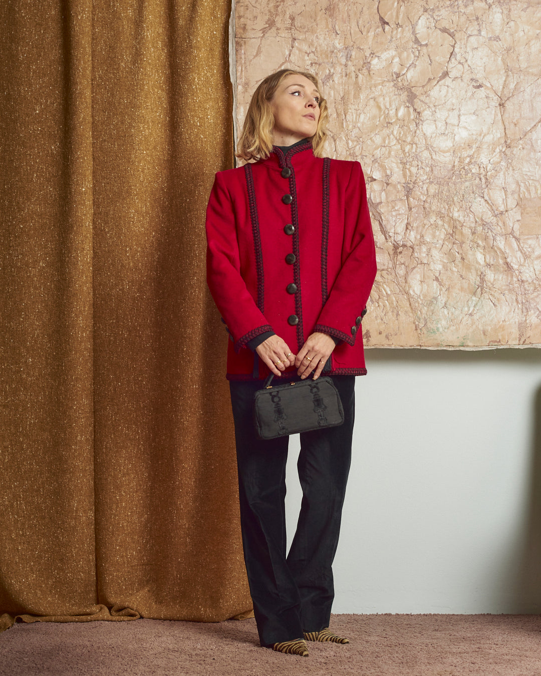Borsa a mano in seta schantung e velluto stampato fibbie