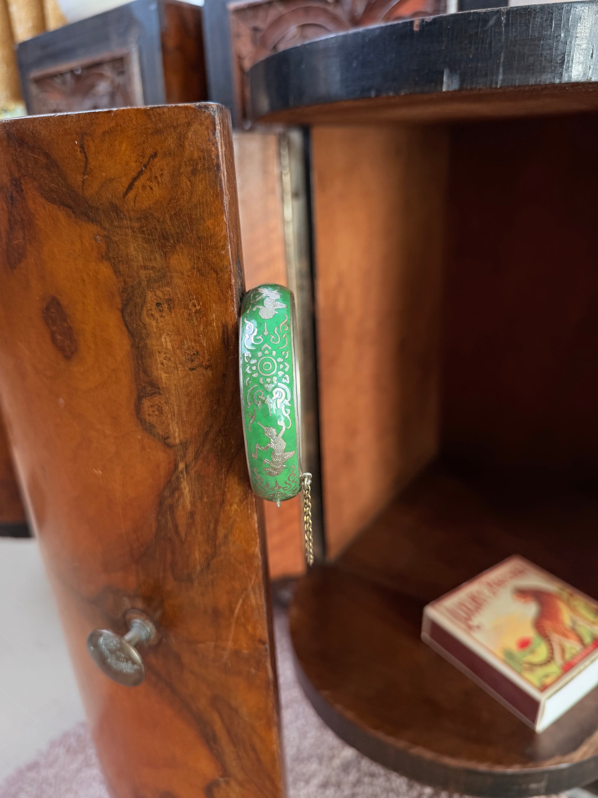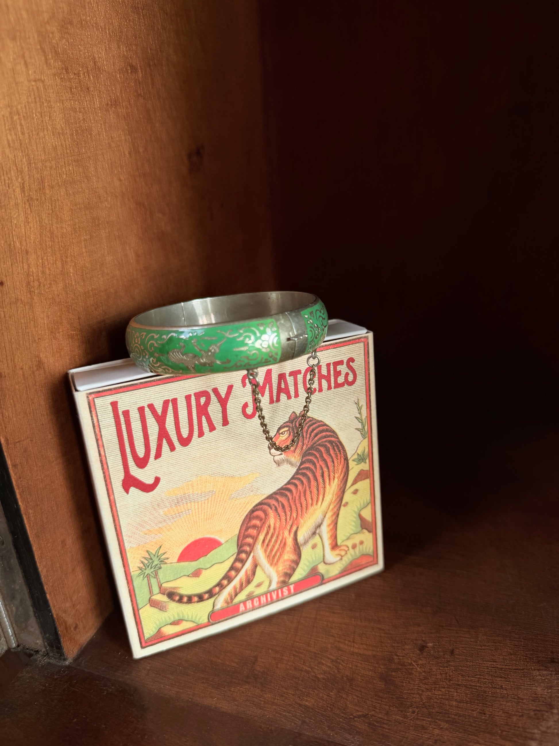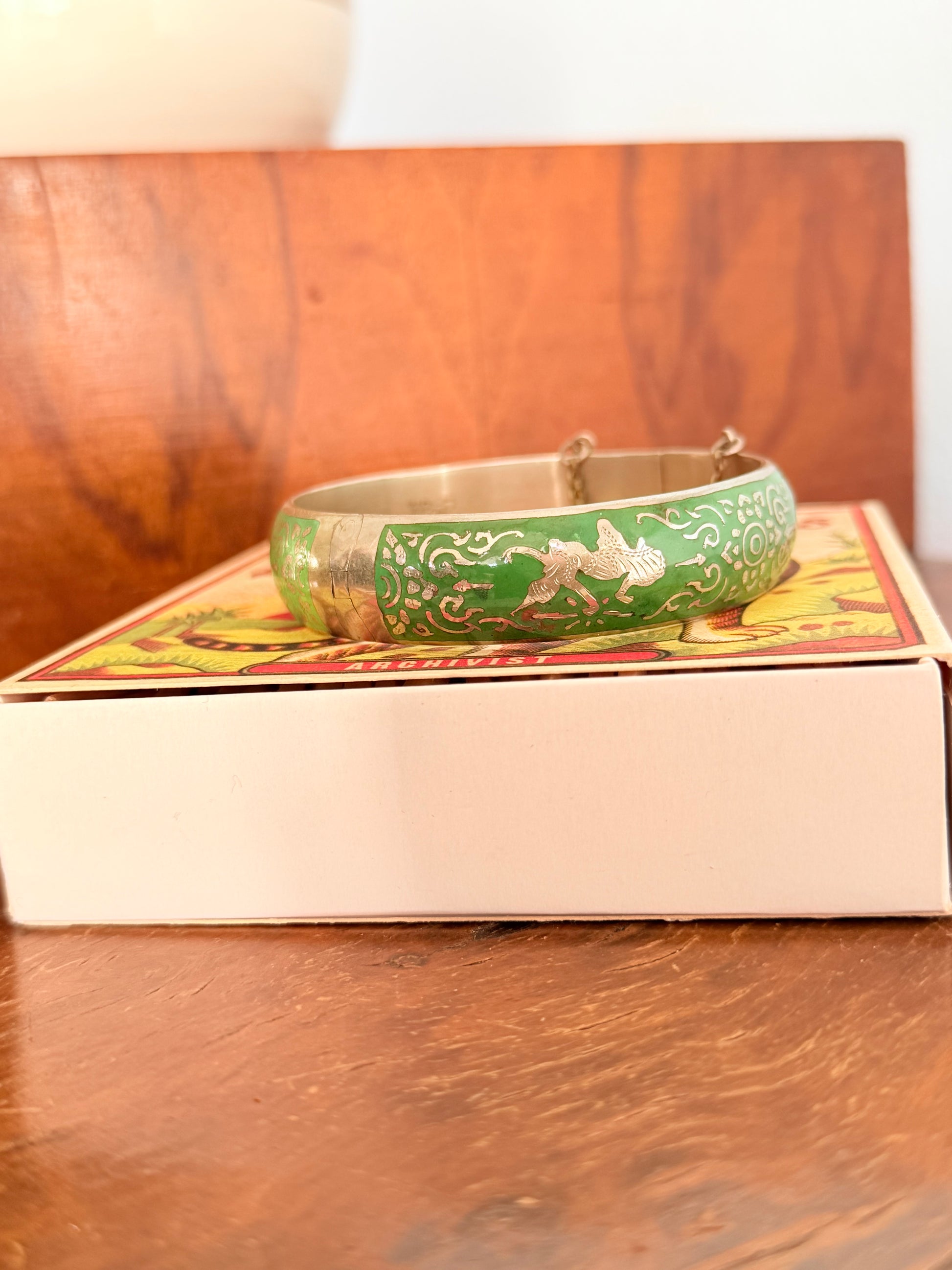 Bracciale a bangle anni80 in metallo argentato con incisioni e chiusura a sgancio e catenella