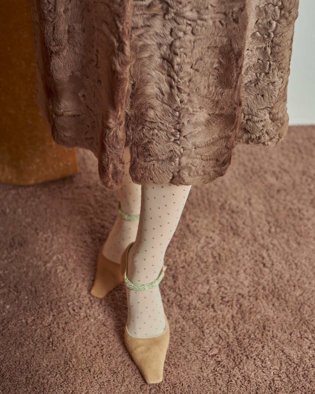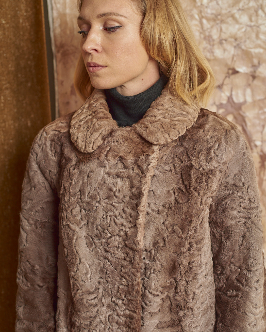Cappotto in pelliccia astrakan anni 60 rosa cipria
