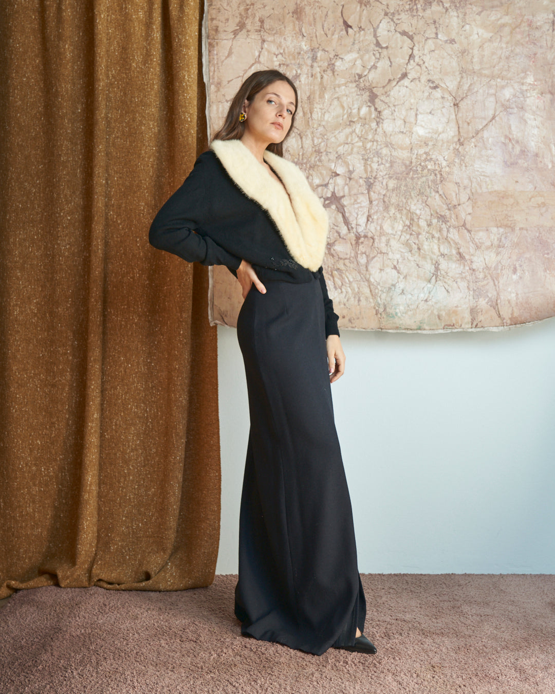 Cardigan in cachemere anni 50 made in Usa con collo in pelliccia