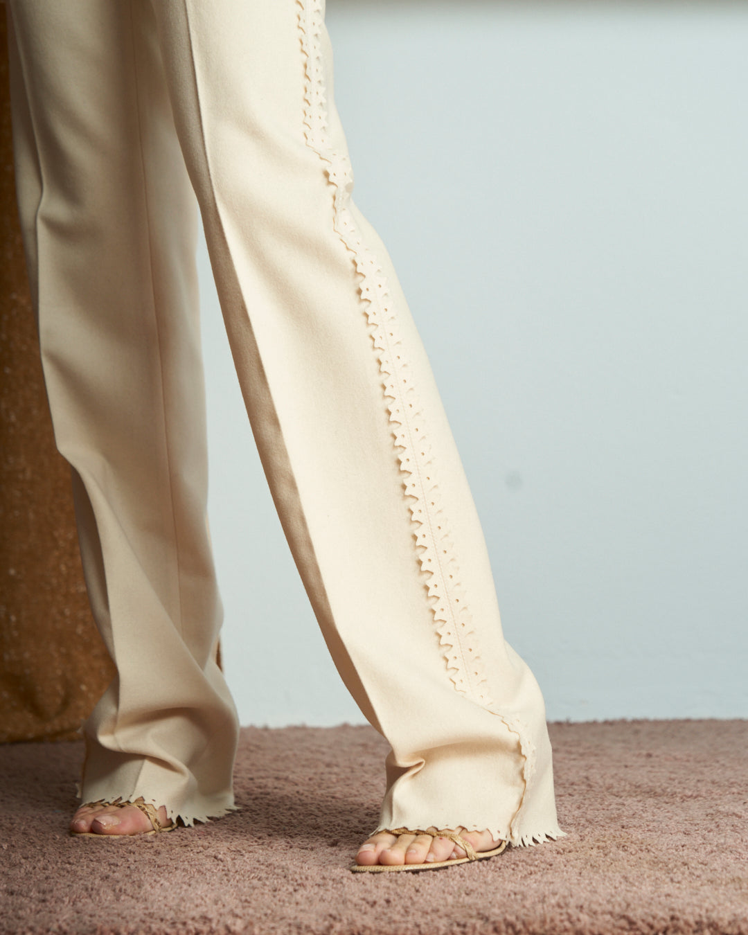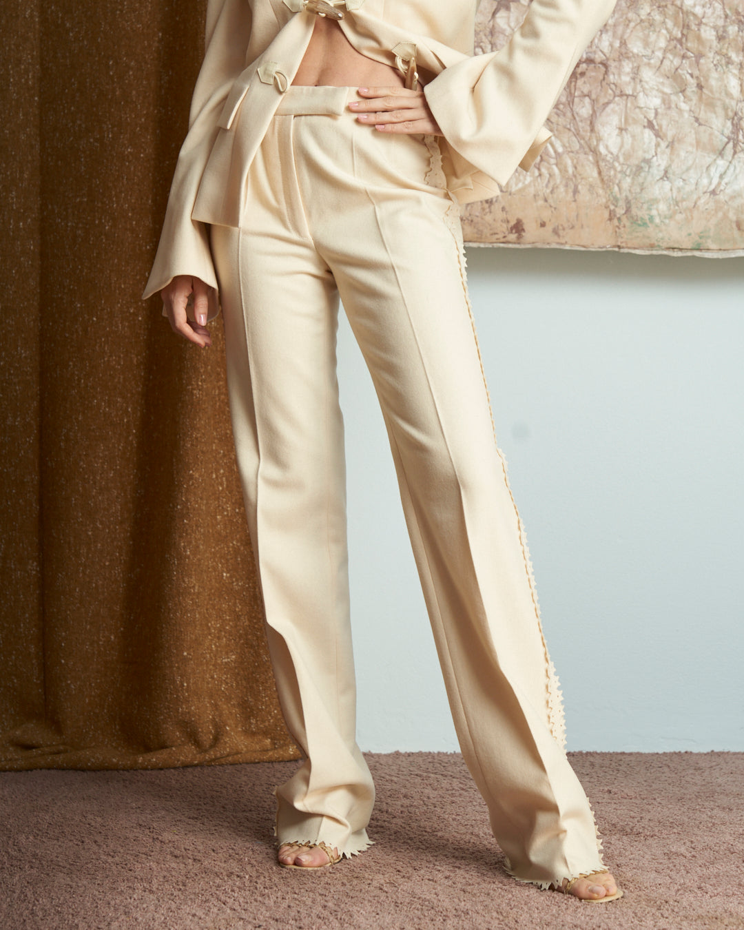 Completo Antonio Berardi in lana Bianco con alamari e bordi al laser