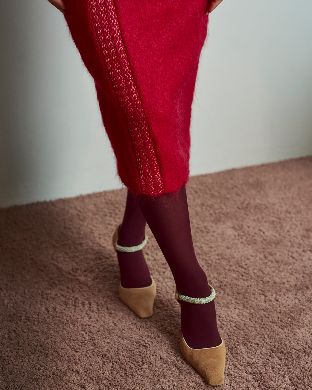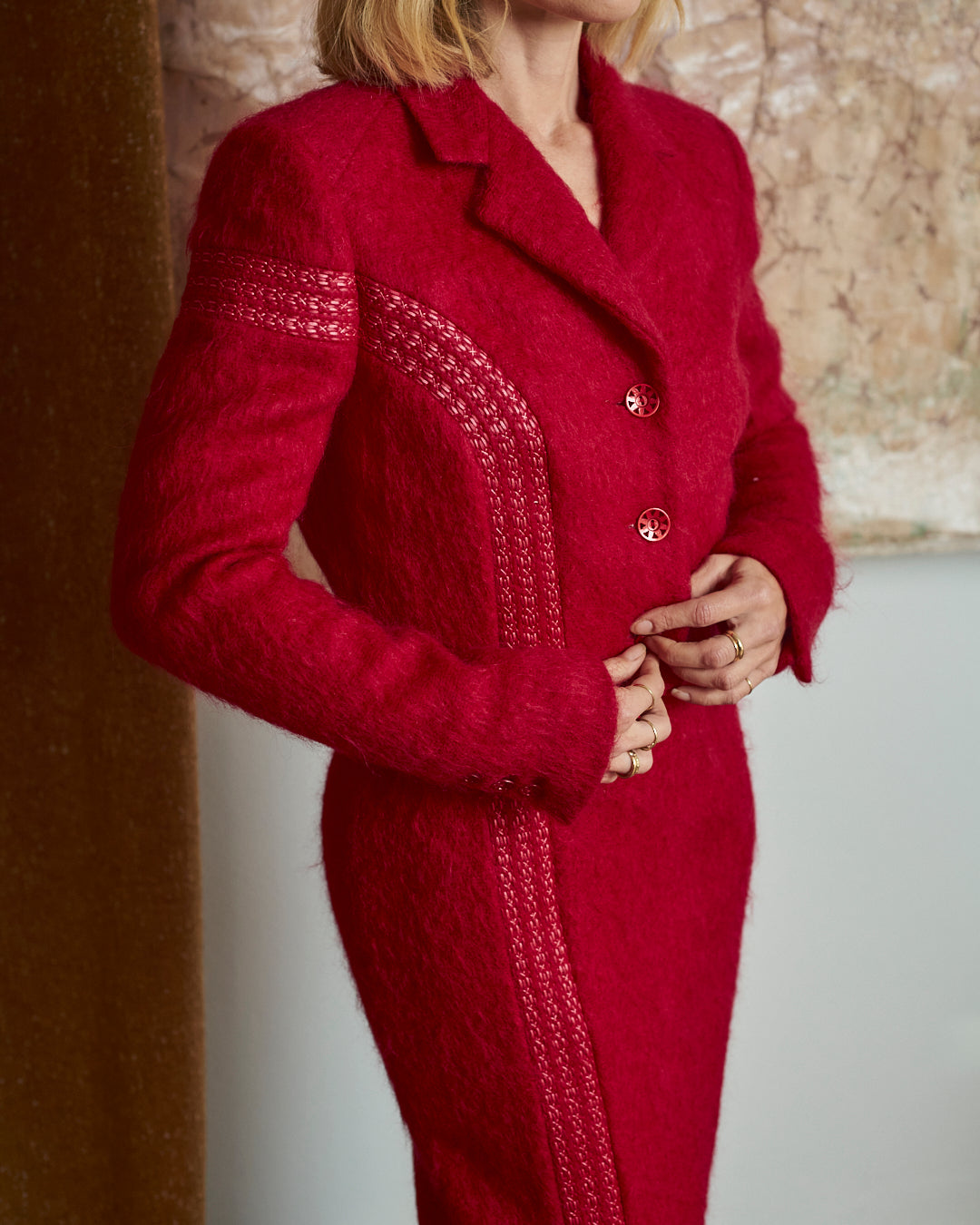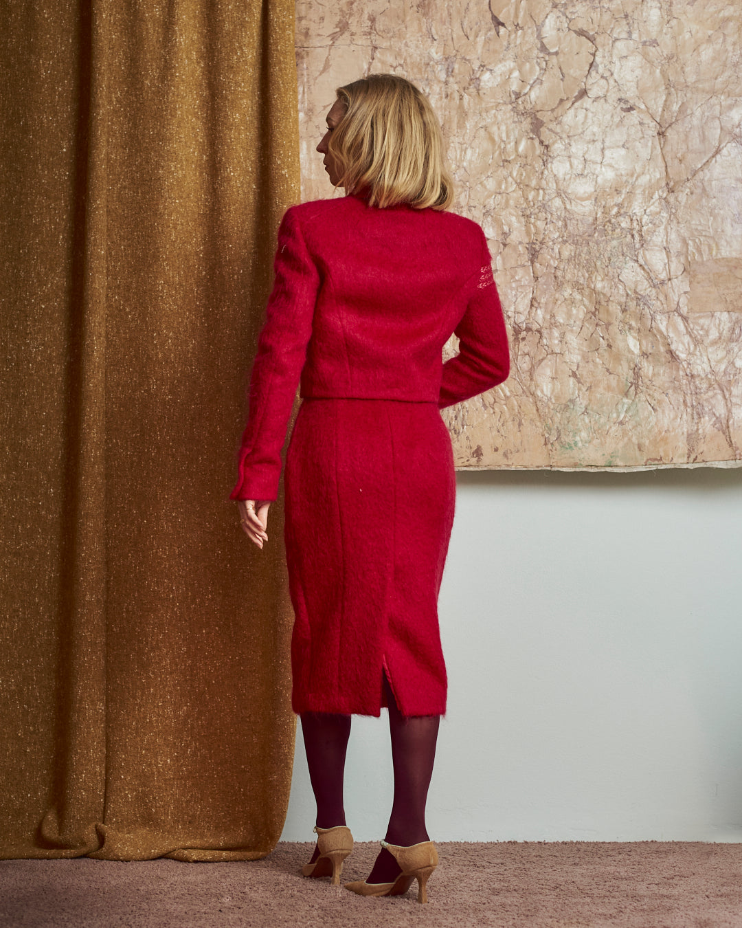 Completo in lana Mohair firmato Antonio Berardi rosso ciliegia ricamato