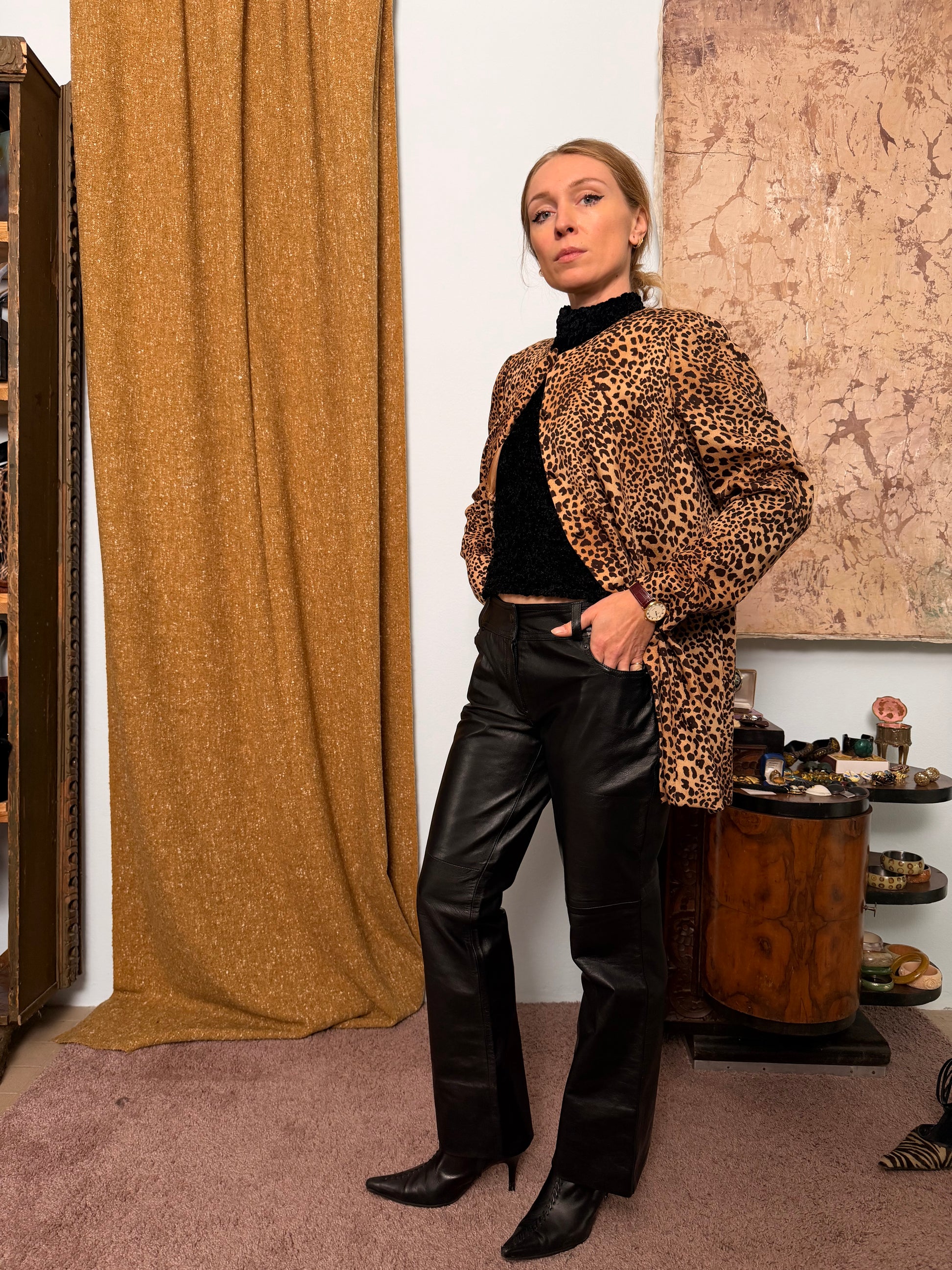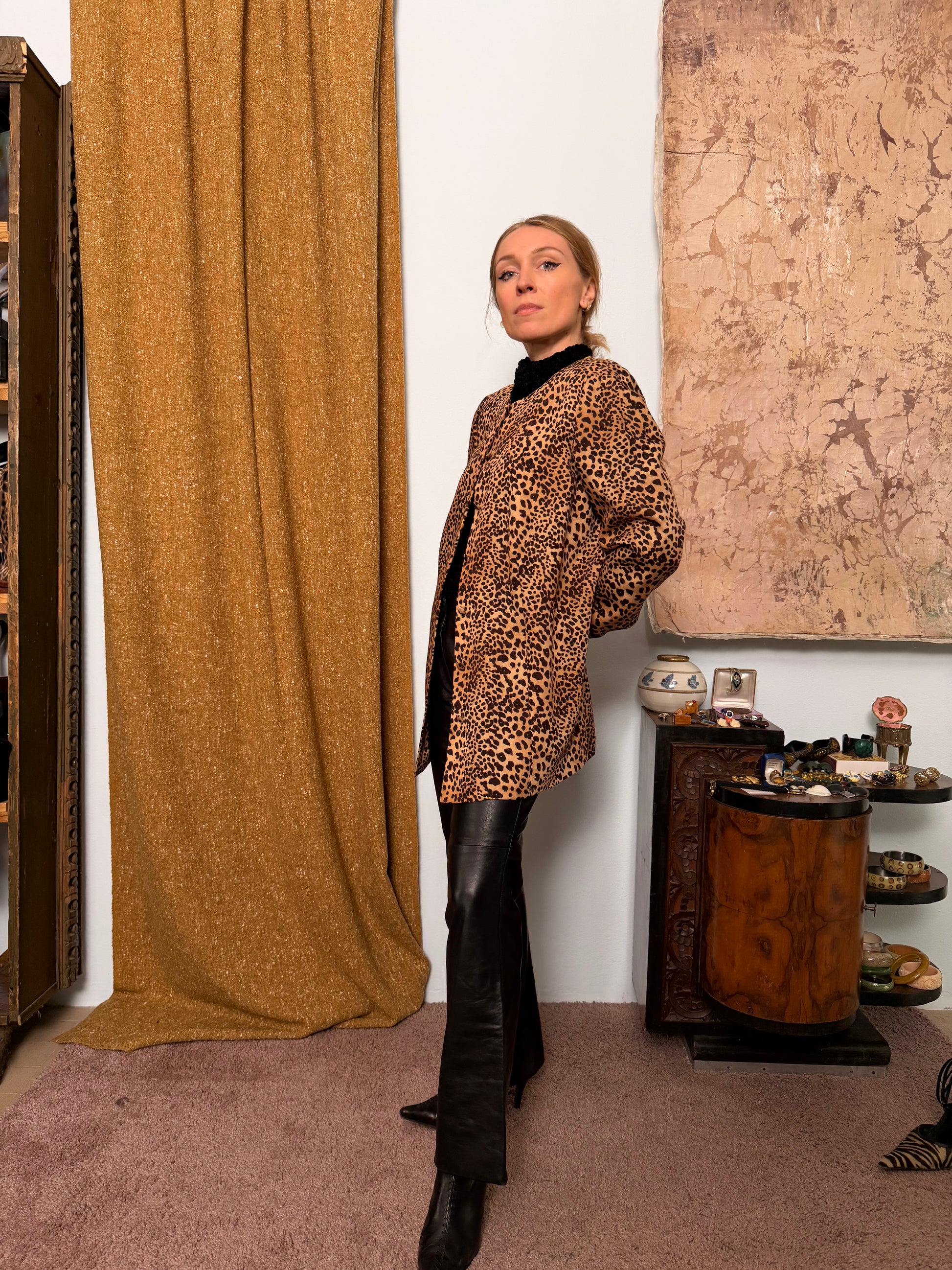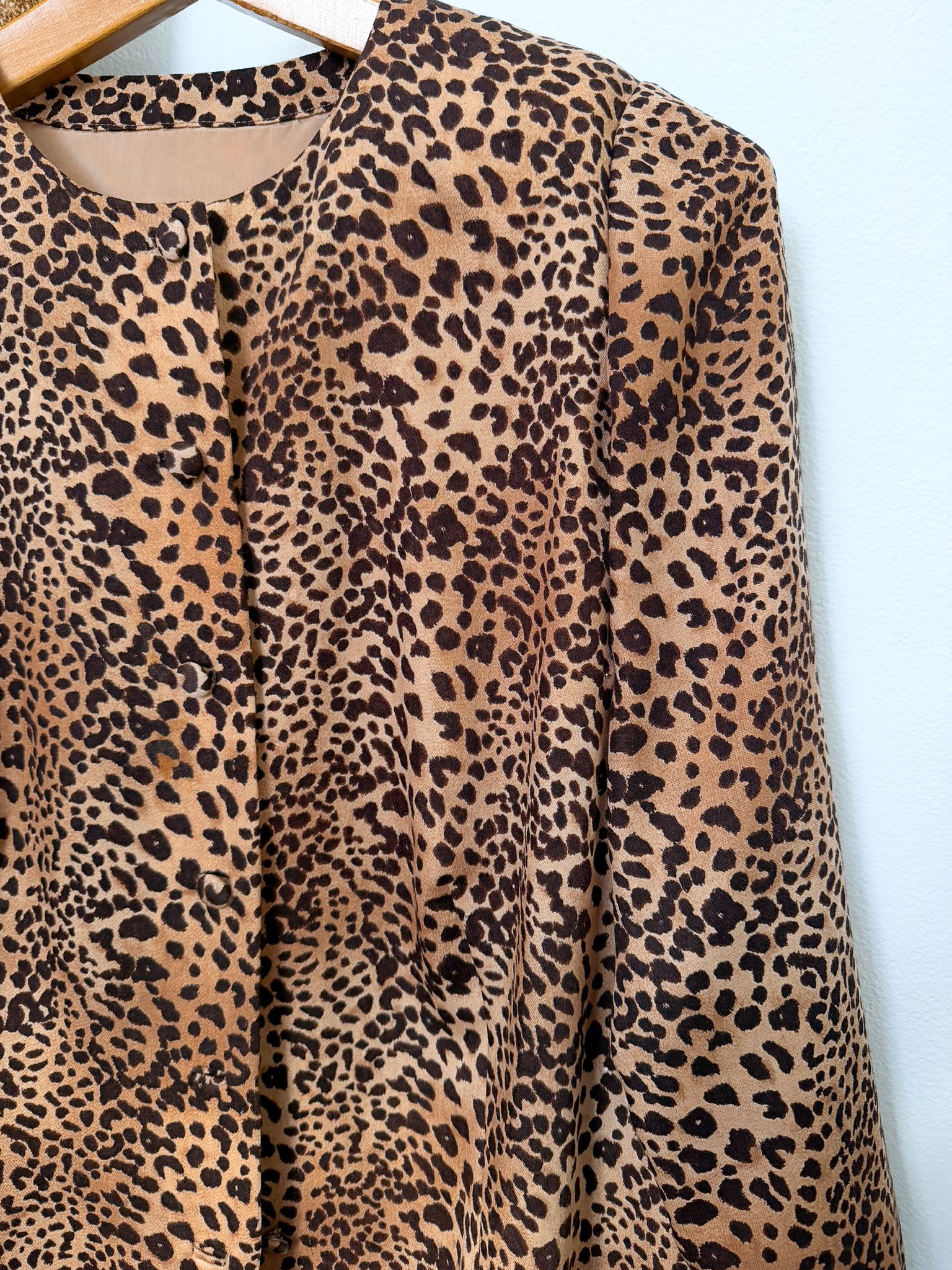 Giacca sartoriale in lana pura con motivo leopardato.