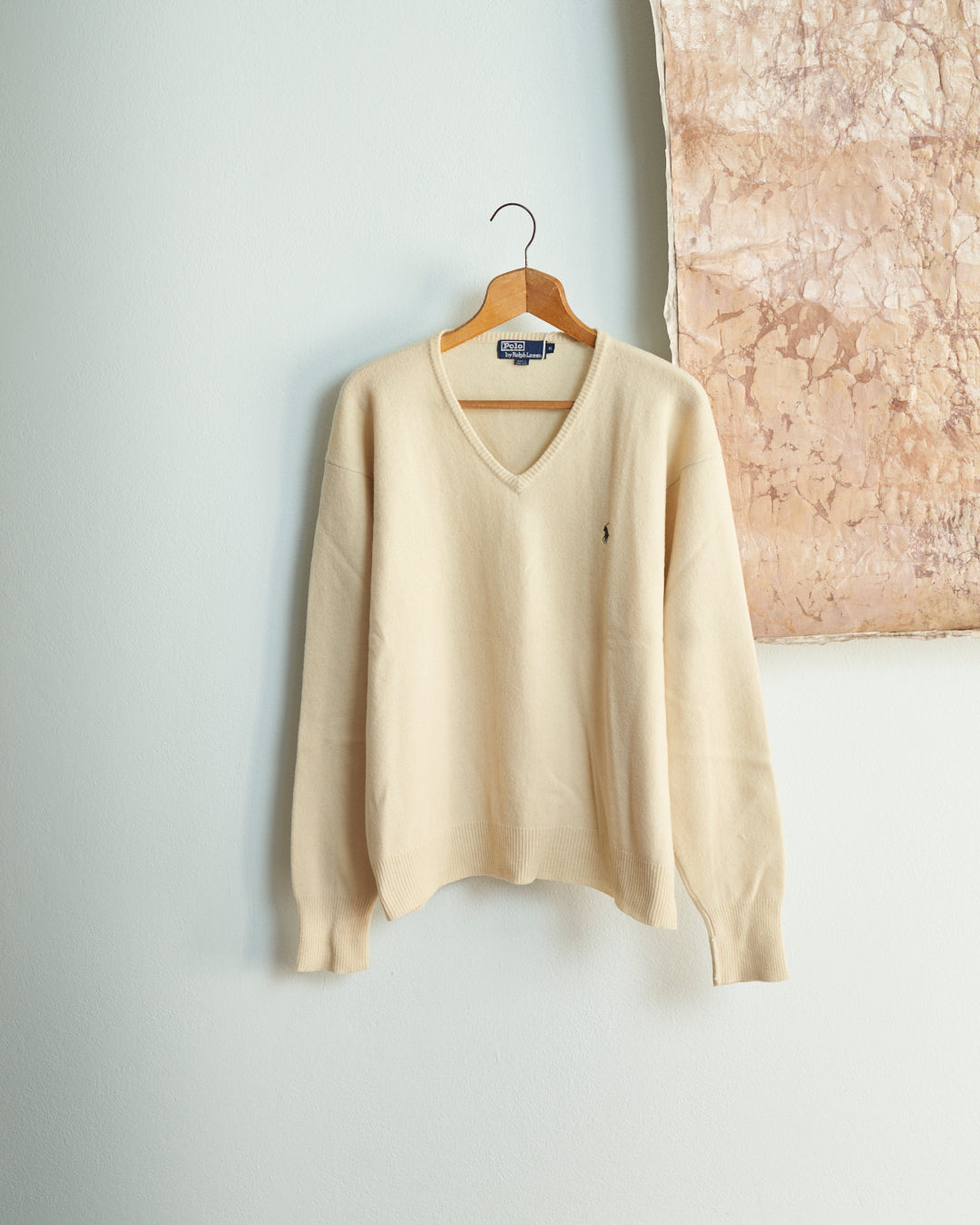 Raffinata maglia in lana vergine Ralph Lauren dal colore panna naturale.