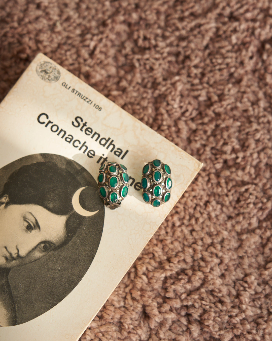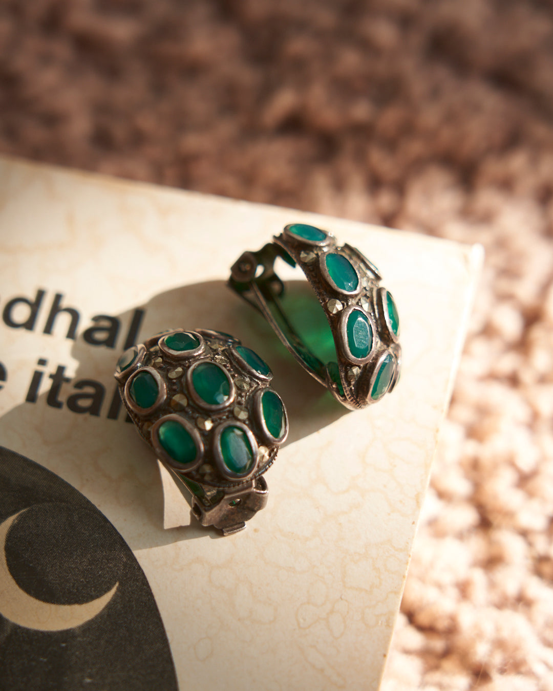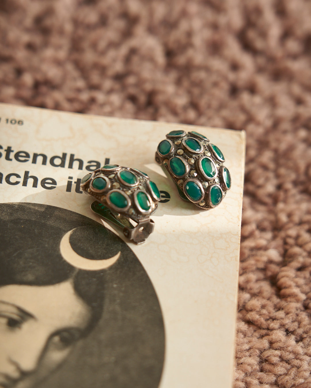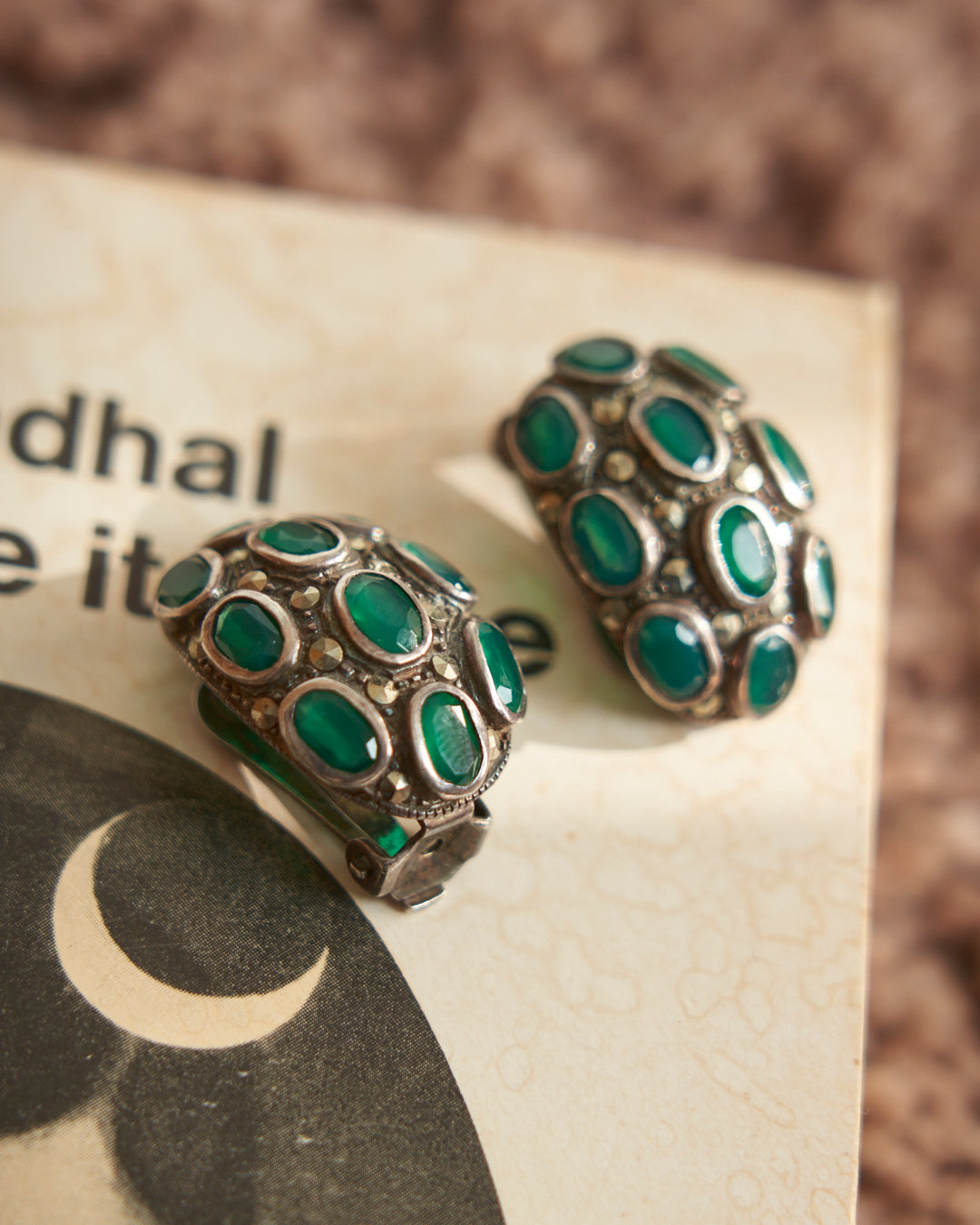 Orecchini in argento antichi con radici di smeraldo e marcassite