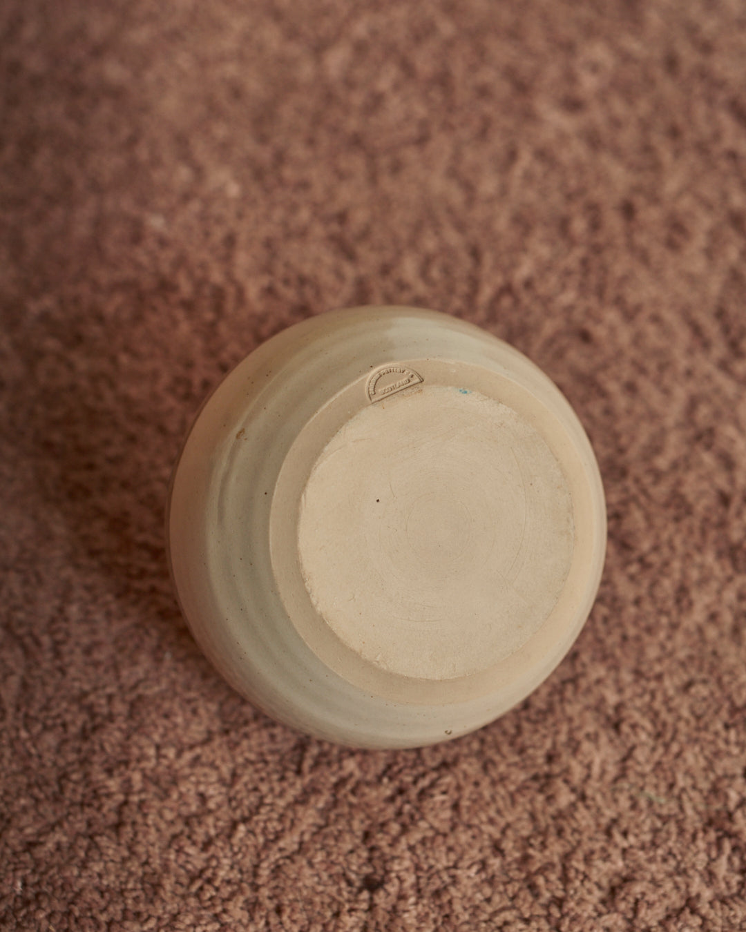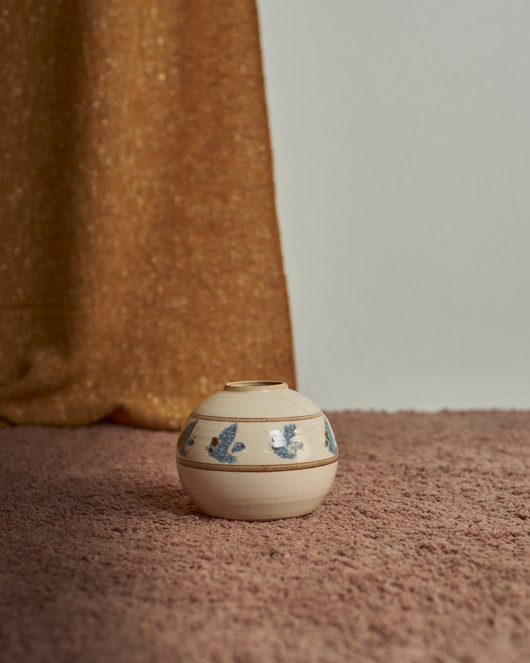 Vaso tondo in ceramica smaltata con disegni minimal.